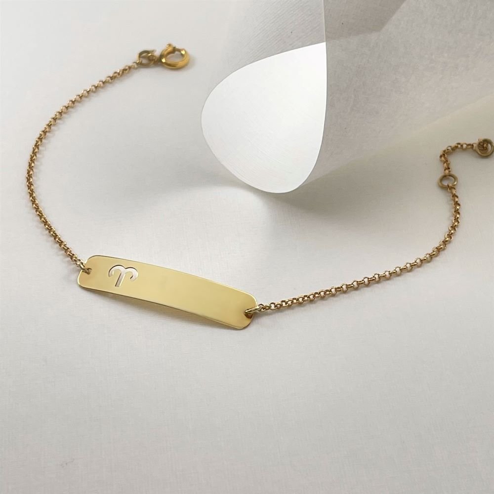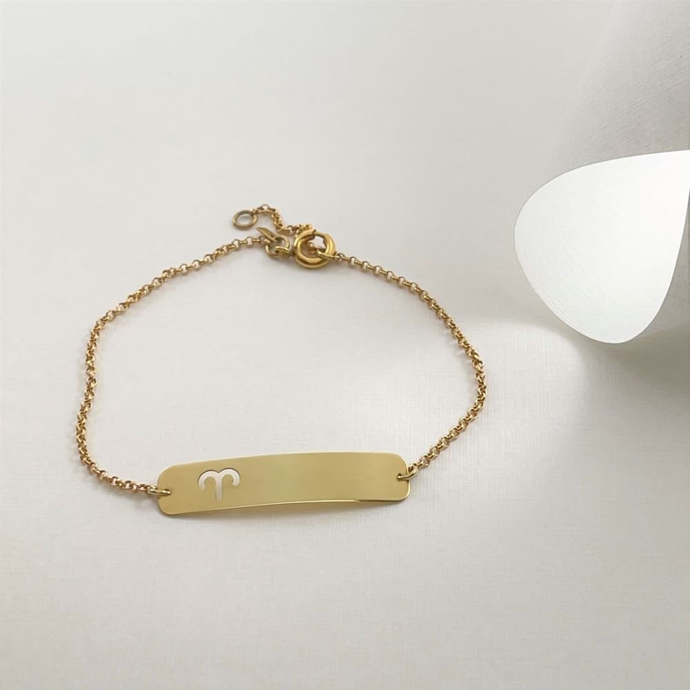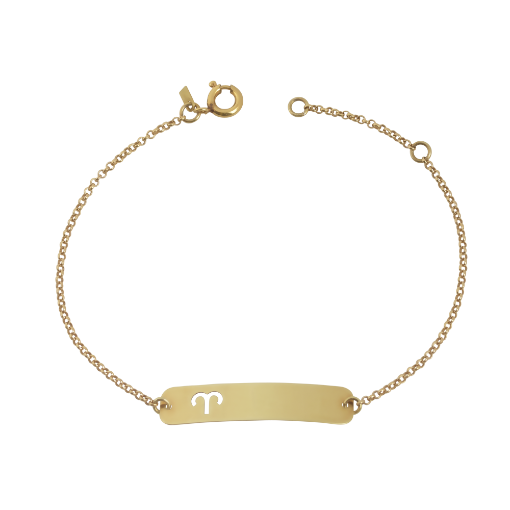 "Tag with astrological sign" Bracelet 11111 "Tag with astrological sign" Bracelet SKU 0008656 €535.00 Add to cart AVAILABLE Add to favorites Golden bracelet tag, decorated with the astrological sign of your choise, suitable for all ages. COLOR: COLOR YELLOWYELLOW METAL: METAL GOLD K14GOLD K14 FINISHING: FINISHING SHINYSHINY Weight 2.00 g Quantity Guarantee Accompanied by quality and manufacture guarantee by ΚΛΖΛΝΛLBΛ.