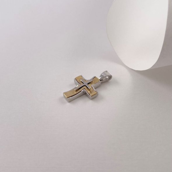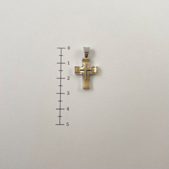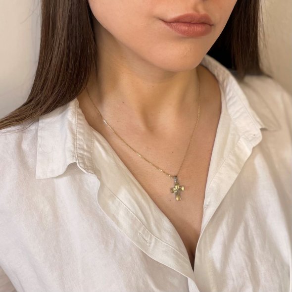 Double-colored cross 1111 Double-colored cross SKU 0013432 €785.00 Add to cart AVAILABLE Add to favorites Double-colored cross, with a second smaller cross at the center and combination of matte and shiny finishing. Suitable for baptism, but can also be worn as jewelry. COLOR: COLOR YELLOW-WHITEYELLOW-WHITE METAL: METAL GOLD K14GOLD K14 FINISHING: FINISHING MATTE-SHINYMATTE-SHINY Weight 3.90 g Quantity Guarantee Accompanied by quality and manufacture guarantee by ΚΛΖΛ-ΝΛLBΛ.