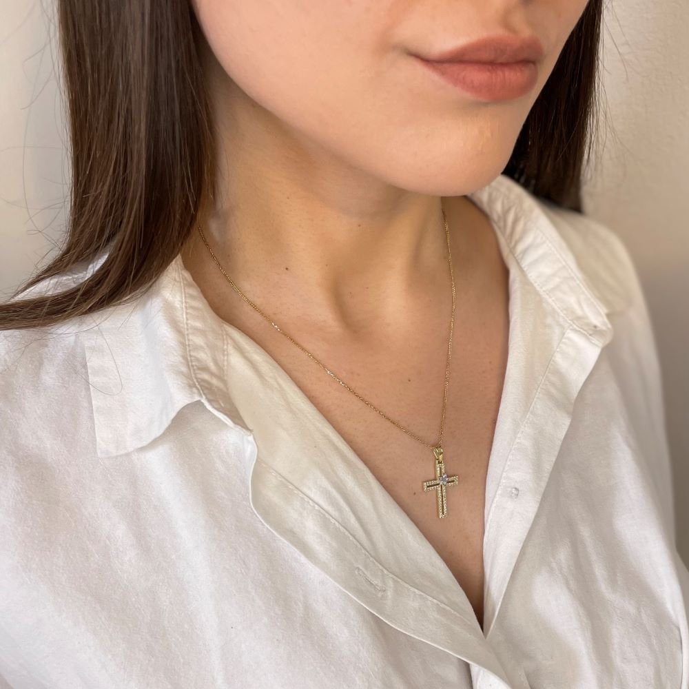 Double-colored flowered-shaped cross 1111 Double-colored flowered-shaped cross SKU 0027518 €525.00 Add to cart AVAILABLE Add to favorites Double-colored flowered-shaped golden cross with white zircons. Suitable for baptism, but can also be worn as jewelry. COLOR: COLOR YELLOW-WHITEYELLOW-WHITE METAL: METAL GOLD K14GOLD K14 FINISHING: FINISHING SHINYSHINY STONE STONE JEWEL: JEWEL ZIRCONZIRCON STONE COLOR STONE COLOR ΧΡΩΜΑ ΛΙΘΟΥ: ΧΡΩΜΑ ΛΙΘΟΥ WHITEWHITE Weight 2.40 g Quantity Guarantee Accompanied by quality and manufacture guarantee by ΚΛΖΛ-ΝΛLBΛ.