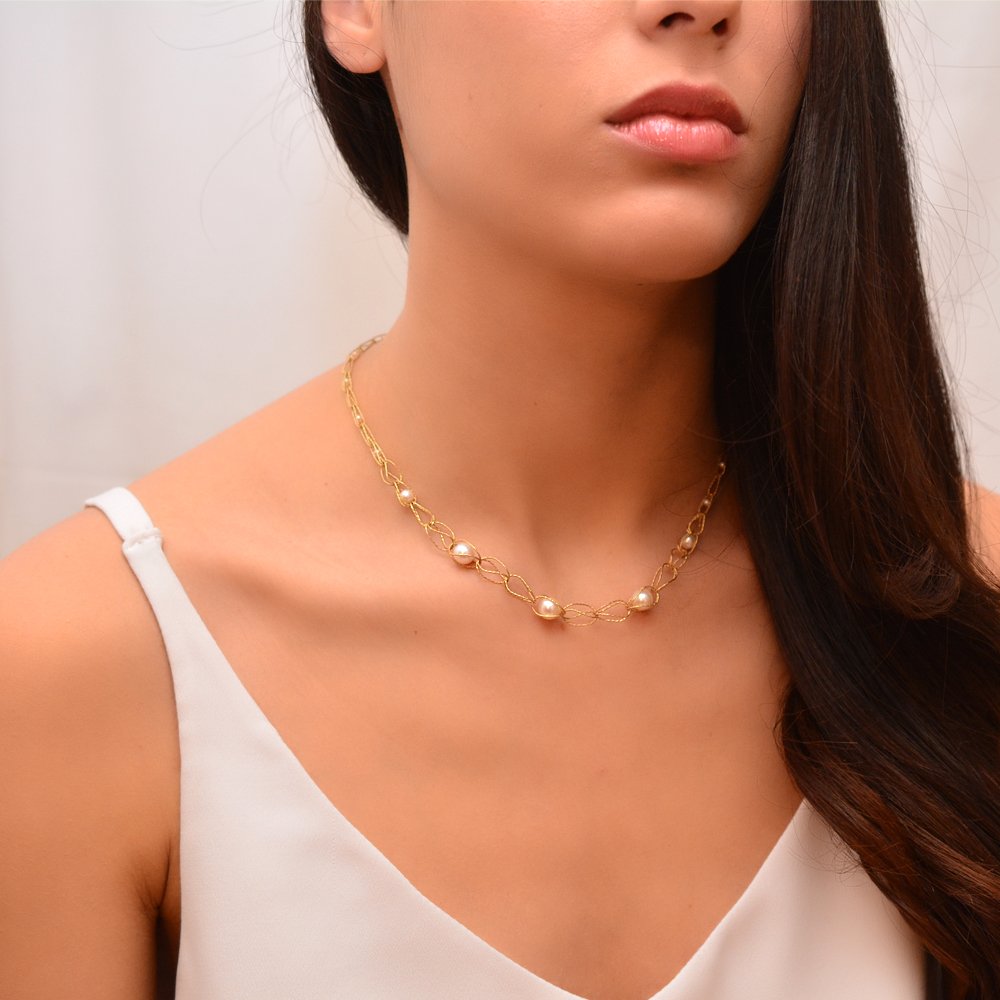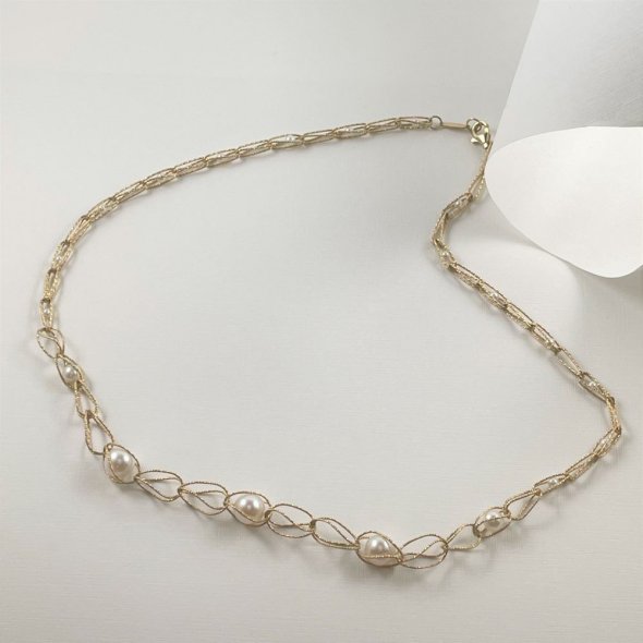 "Enclosed pearls" Necklace 111 "Enclosed pearls" Necklace SKU 0027853 €2,496.00 Add to cart AVAILABLE Add to favorites Golden necklace, decorated with enclosed pearls in different sizes. It can be very nicely matched with the bracelet from the same collection. COLOR: COLOR YELLOWYELLOW METAL: METAL GOLD K14GOLD K14 STONE STONE JEWEL: JEWEL PEARLPEARL Length 42cm Weight 9.30 g Quantity Guarantee Accompanied by quality and manufacture guarantee by ΚΛΖΛΝΛLBΛ.