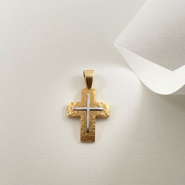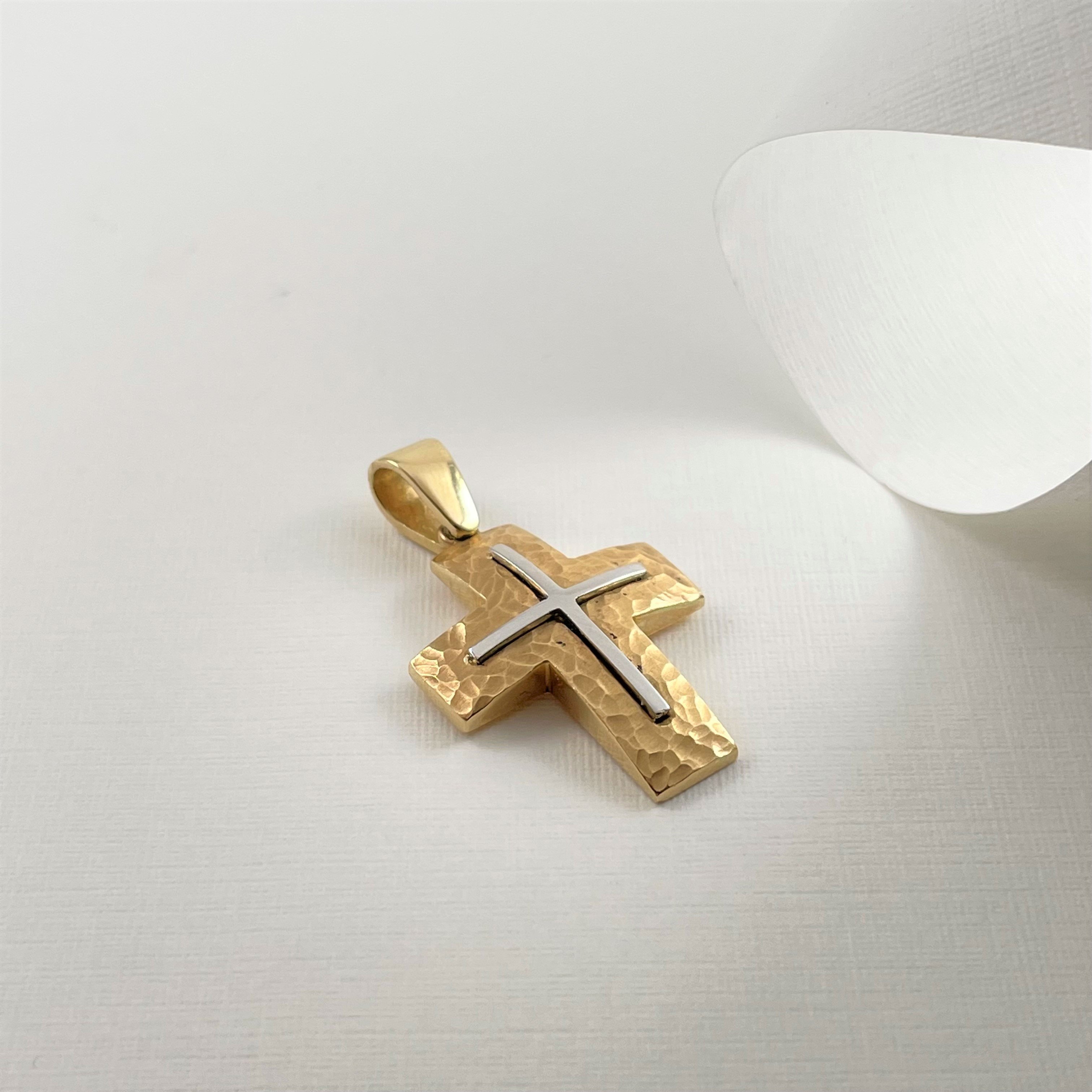 Σταυρός σφυρίλατος κίτρινος, με λευκό κέντρο