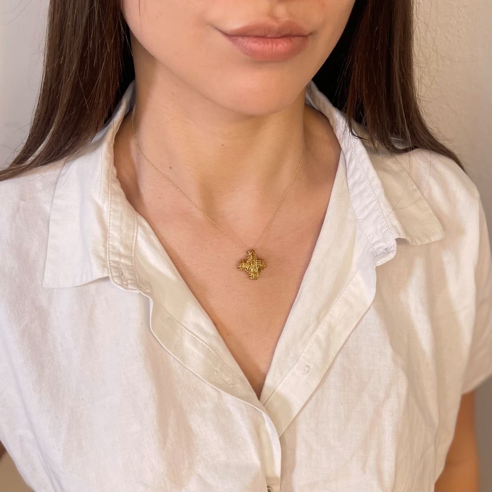 Μενταγιόν σταυρός 111 Μενταγιόν σταυρός SKU 0024958 €995.00 Add to cart AVAILABLE Add to favorites Μενταγιόν σταυρός χειροποίητος σε μοντέρνο σχεδιασμό πλεγμένος σαν ψάθα. Αν θέλετε να μάθετε για τα καράτια του χρυσού που είναι κατασκευασμένο το κόσμημα που θα επιλέξετε, παρακολουθήστε το παρακάτω βίντεο. COLOR: COLOR ΚΙΤΡΙΝΟΚΙΤΡΙΝΟ METAL: METAL ΧΡΥΣΟΣ K18ΧΡΥΣΟΣ K18 FINISHING: FINISHING ΓΥΑΛΙΣΤΕΡΟΓΥΑΛΙΣΤΕΡΟ Weight 3.20 g Quantity
