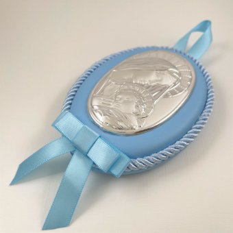 Διακοσμητικό φυλακτό εικόνα Παναγίας πάνω σε εκρού μαξιλάρι