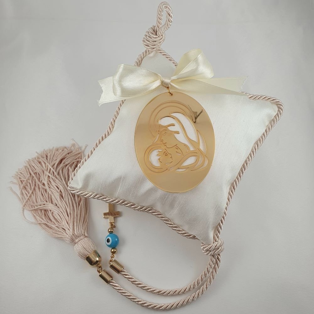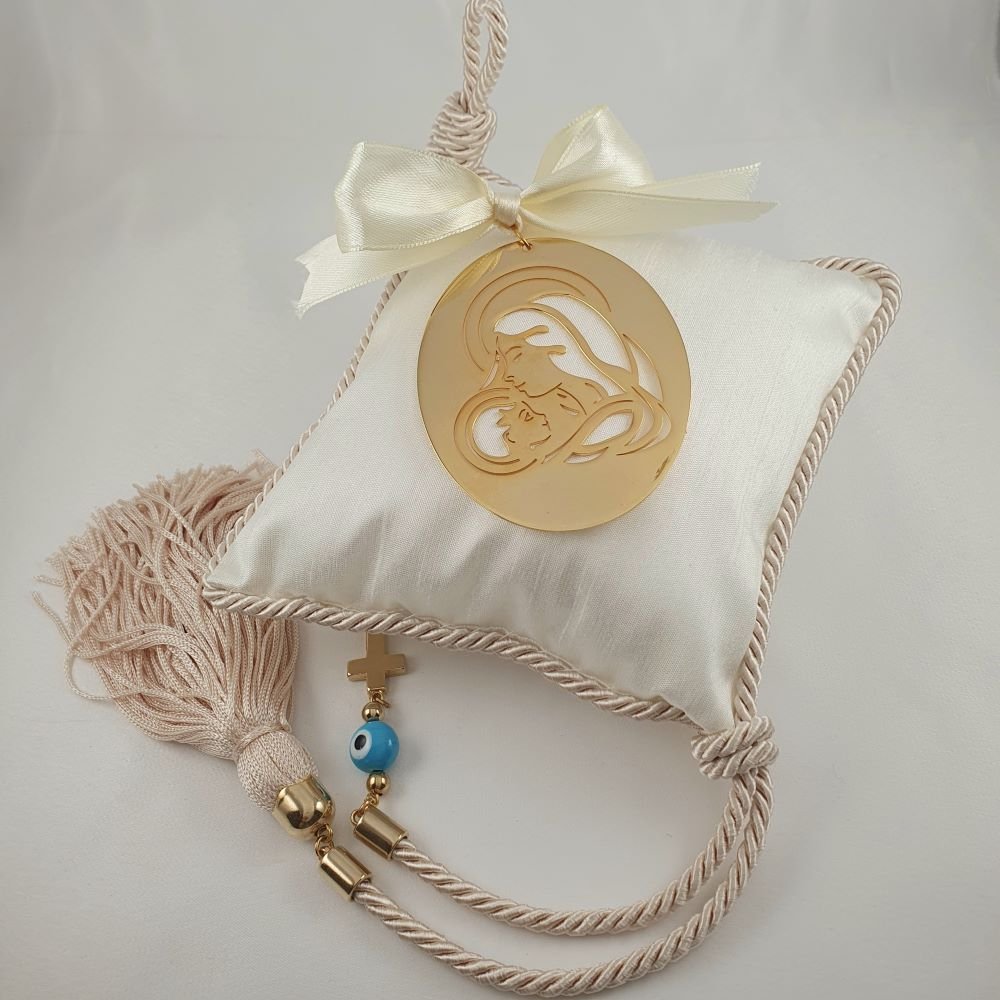 Διακοσμητικό φυλακτό εικόνα Παναγίας πάνω σε εκρού μαξιλάρι