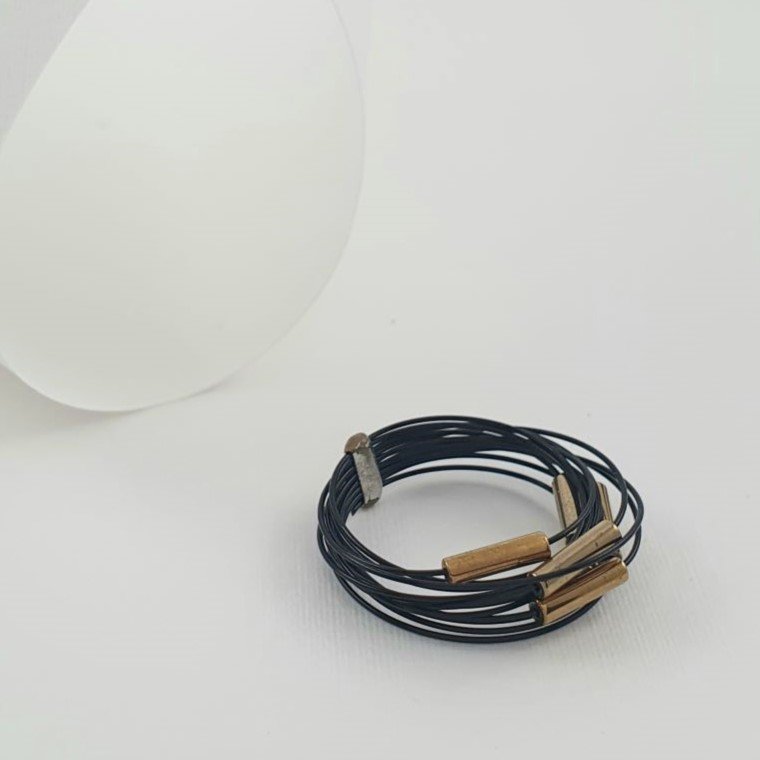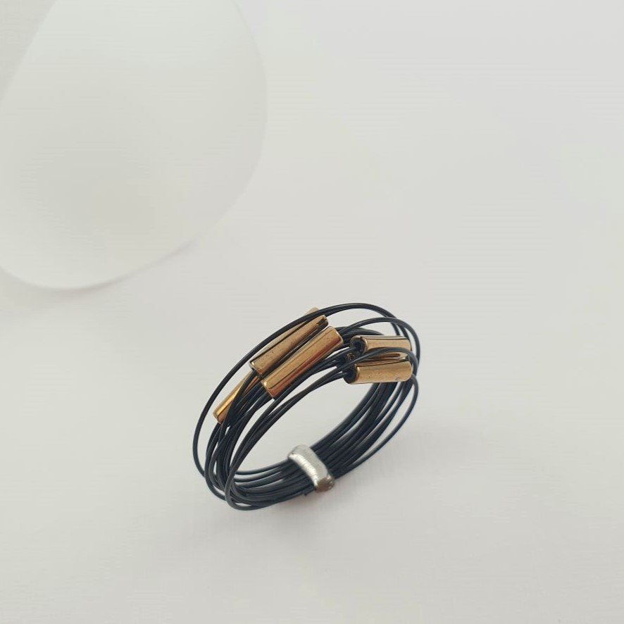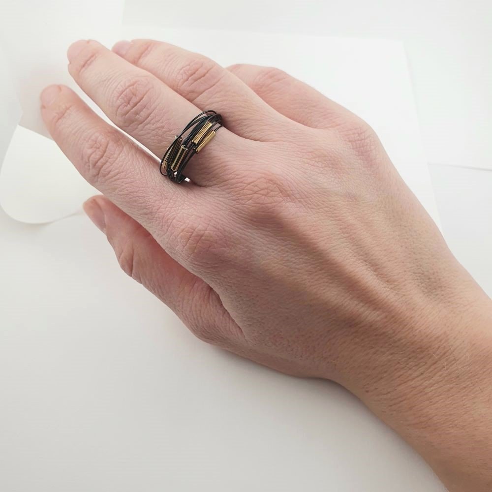 Δαχτυλίδι από μαύρο ατσάλι και χρυσά στοιχεία από Αιματίτη
