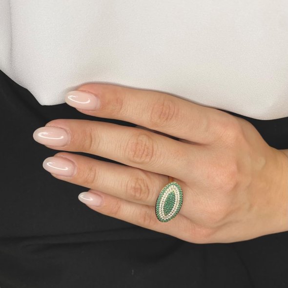 Δαχτυλίδι με πράσινα και λευκά ζιργκόν