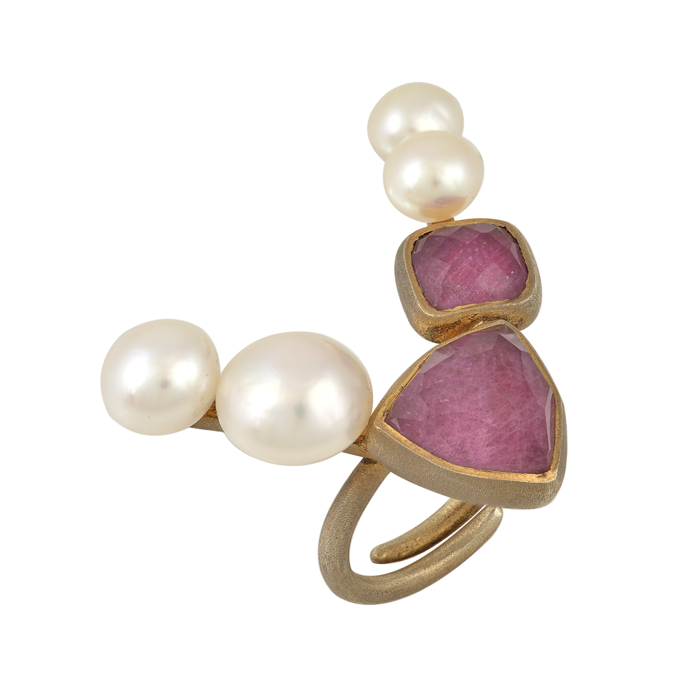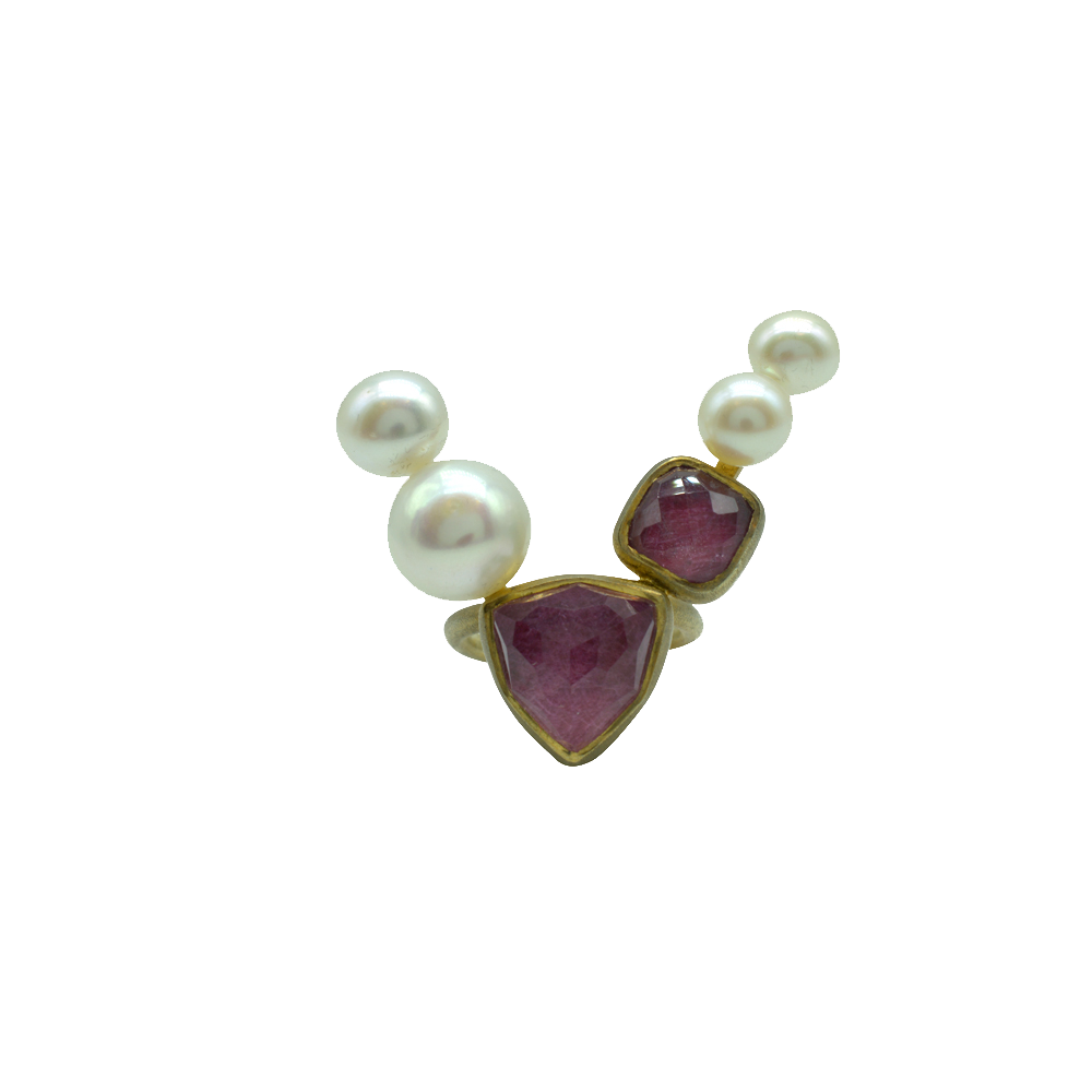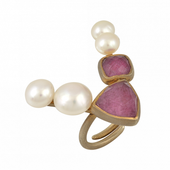 Δαχτυλίδι με ρουμπίνι, χαλκηδόνιο και μαργαριτάρια