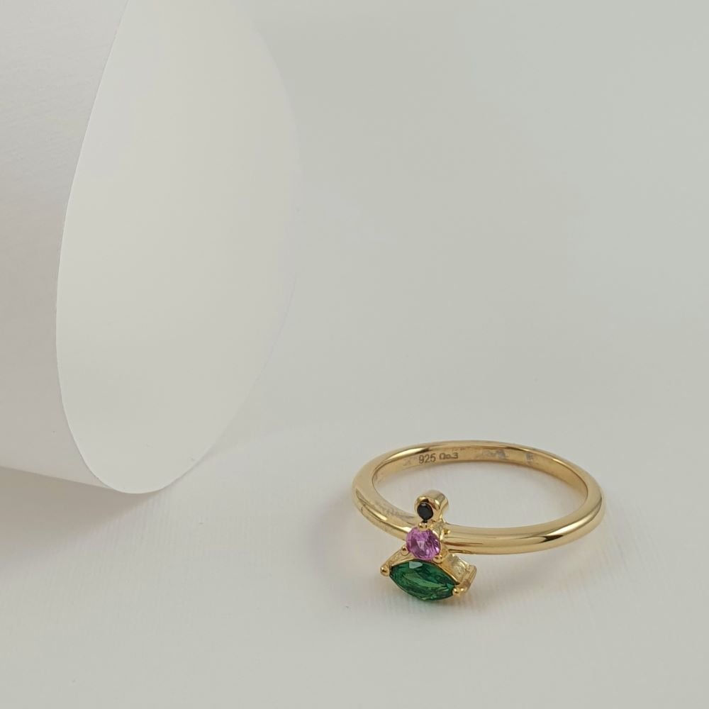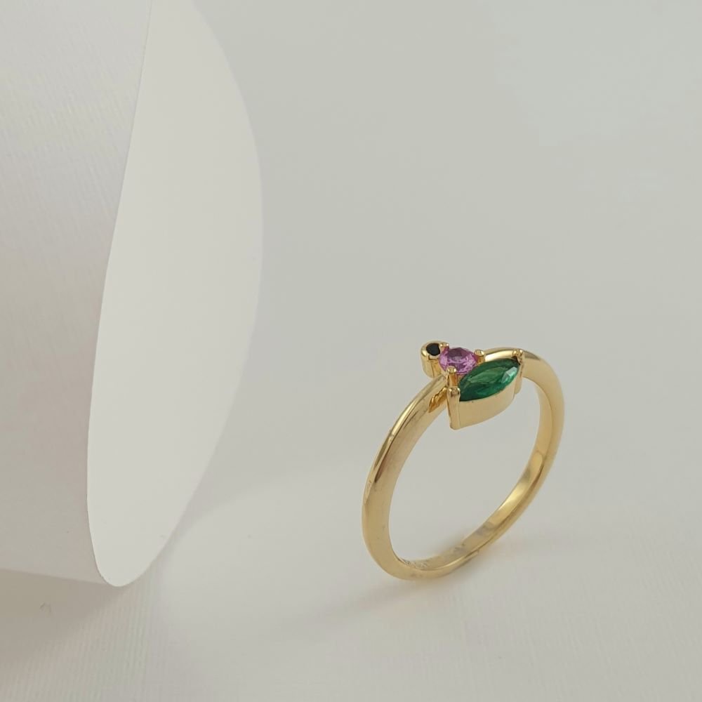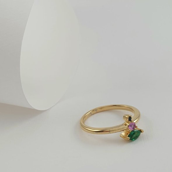 Δαχτυλίδι λεπτό με πράσινο & ροζ Ζιργκον