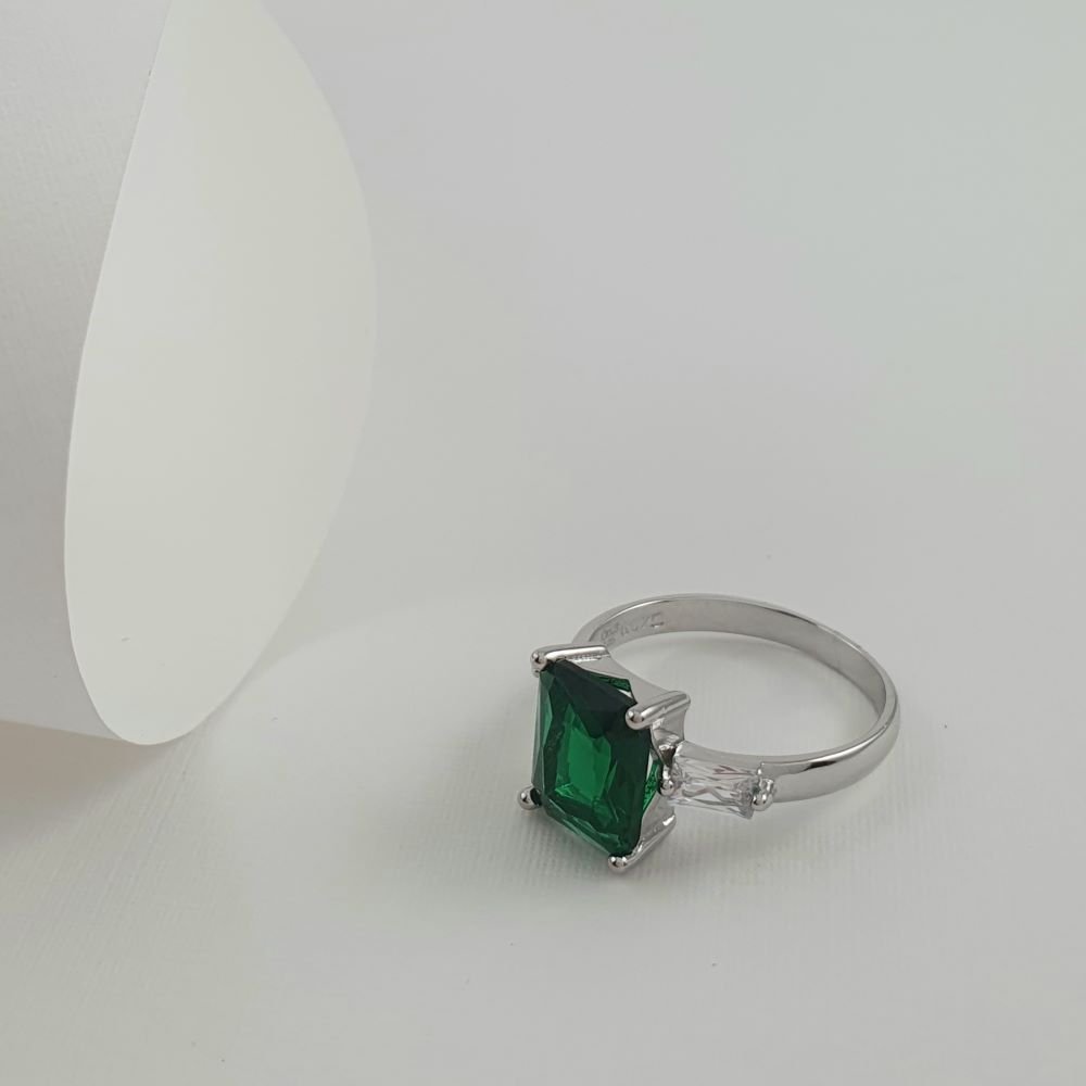 Δαχτυλίδι ασημένιο με πράσινο & λευκά Ζιργκον