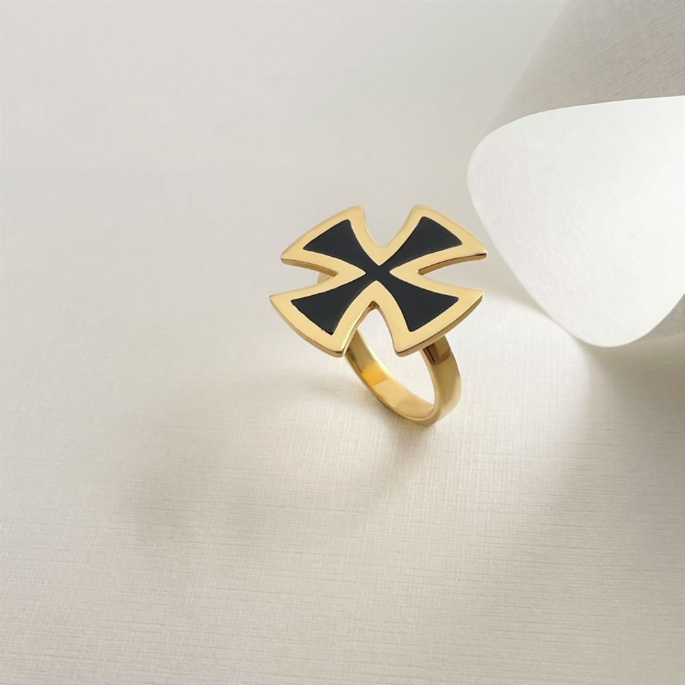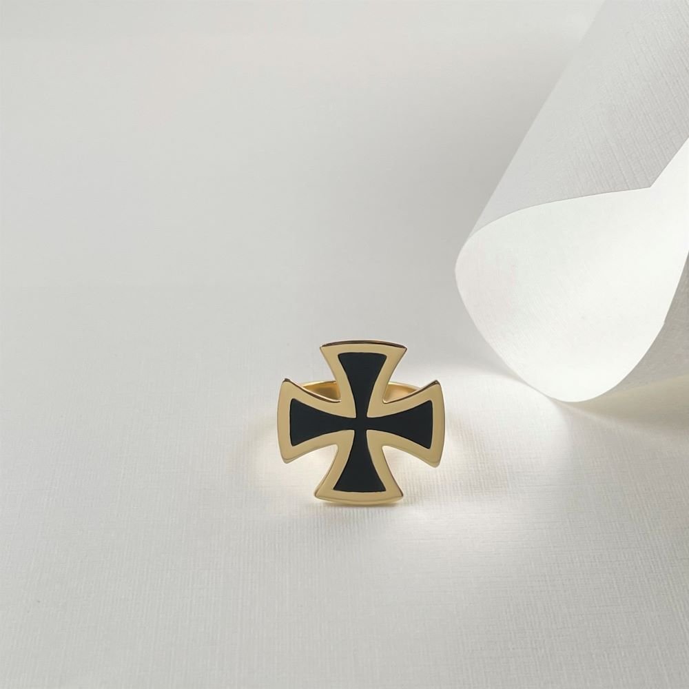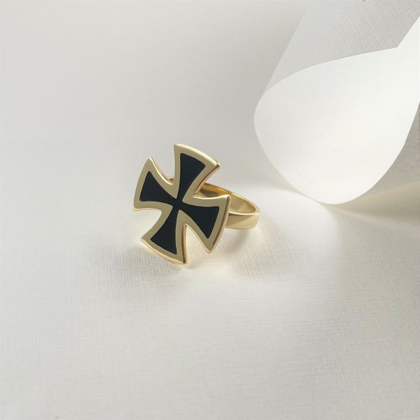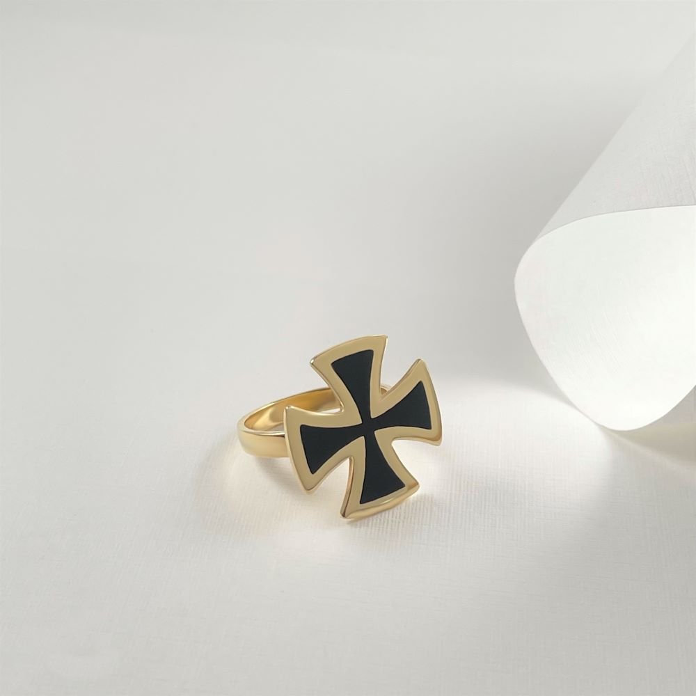 Δαχτυλίδι σταυρός με μαύρο σμάλτο