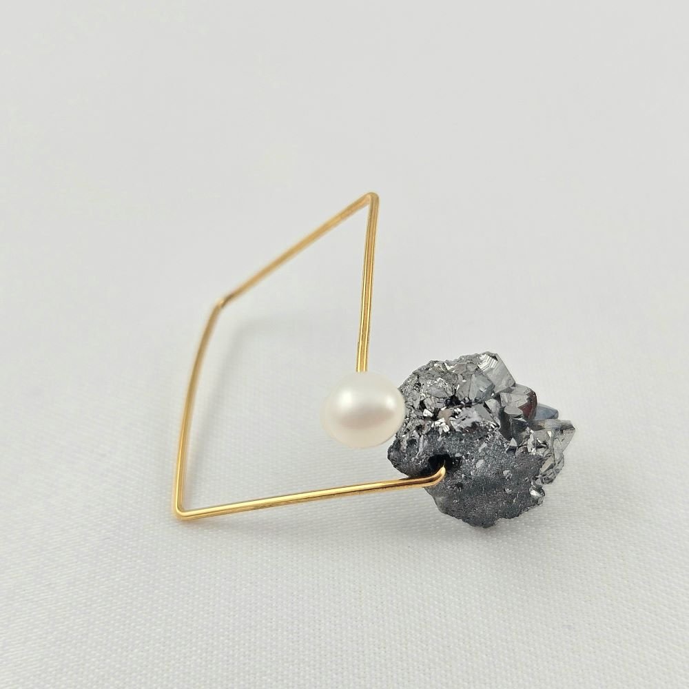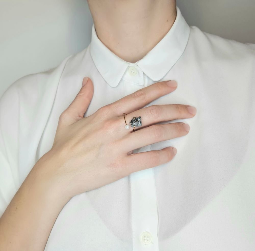 Δαχτυλίδι τετράγωνο με Μαργαριτάρι & Ντρούζι