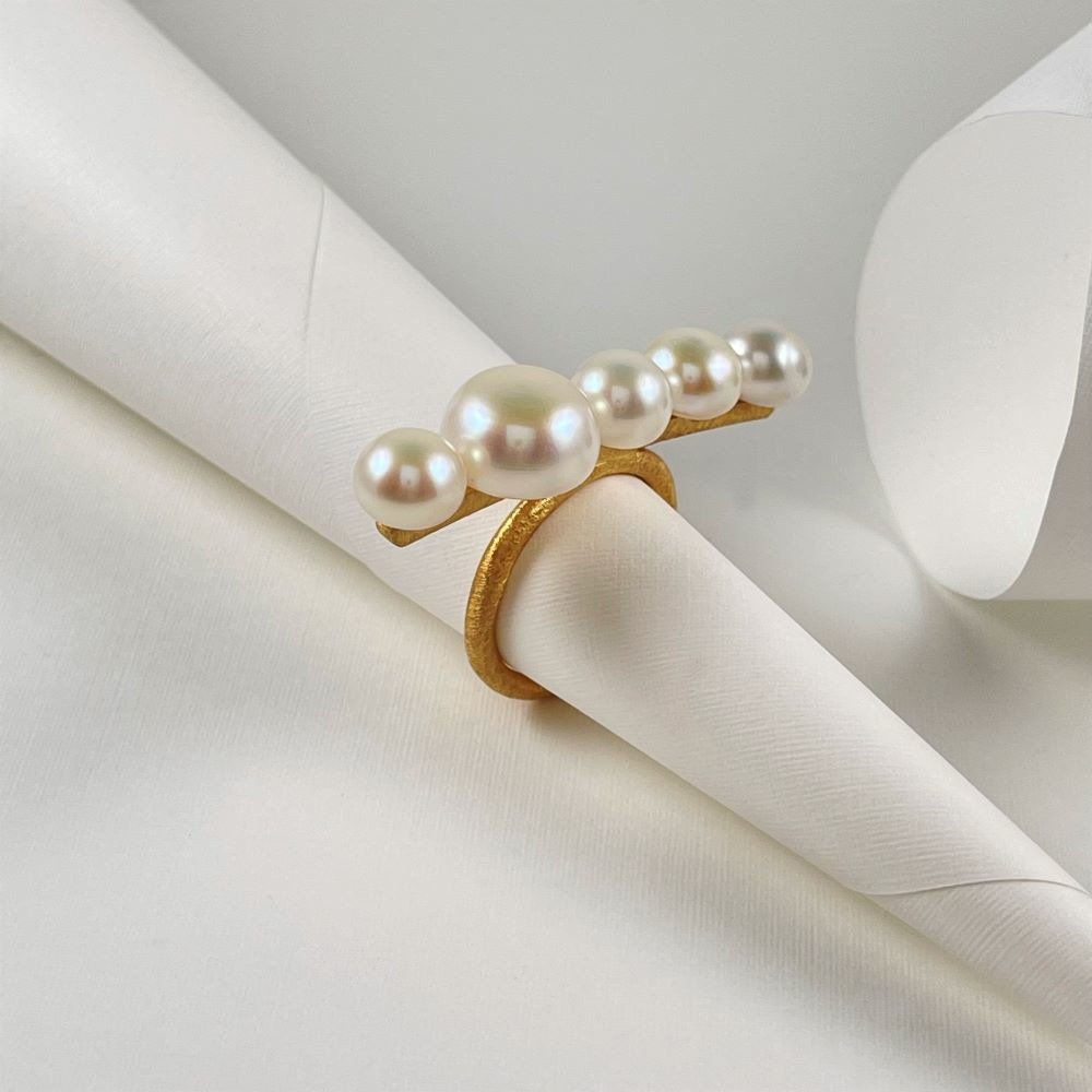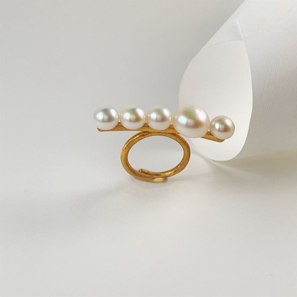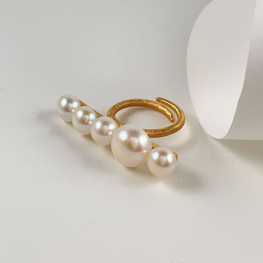 Δαχτυλίδι βέργα με 5 μαργαριτάρια