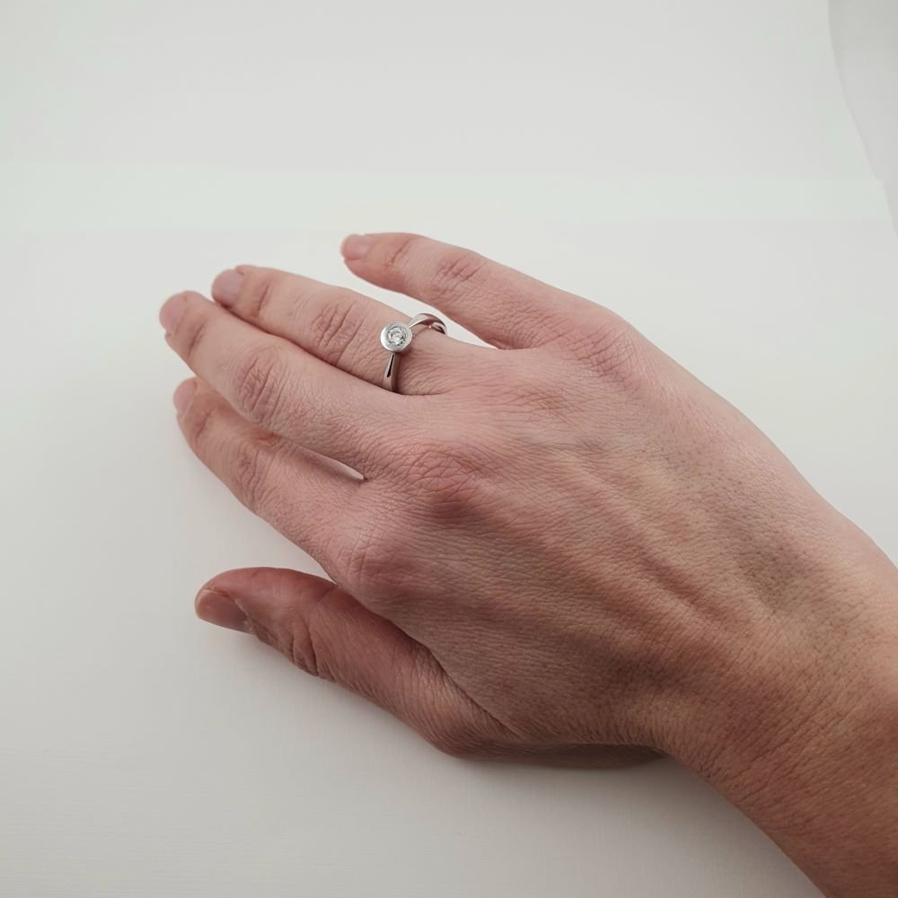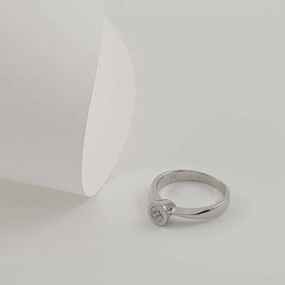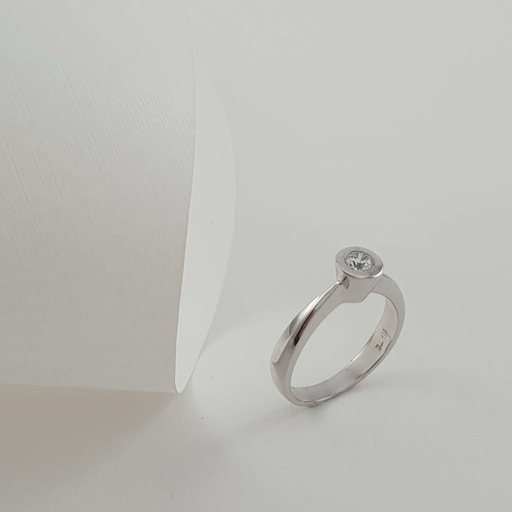 Δαχτυλίδι μονόπετρο από λευκόχρυσο με Ζιργκον με ιδιαίτερο δέσιμο