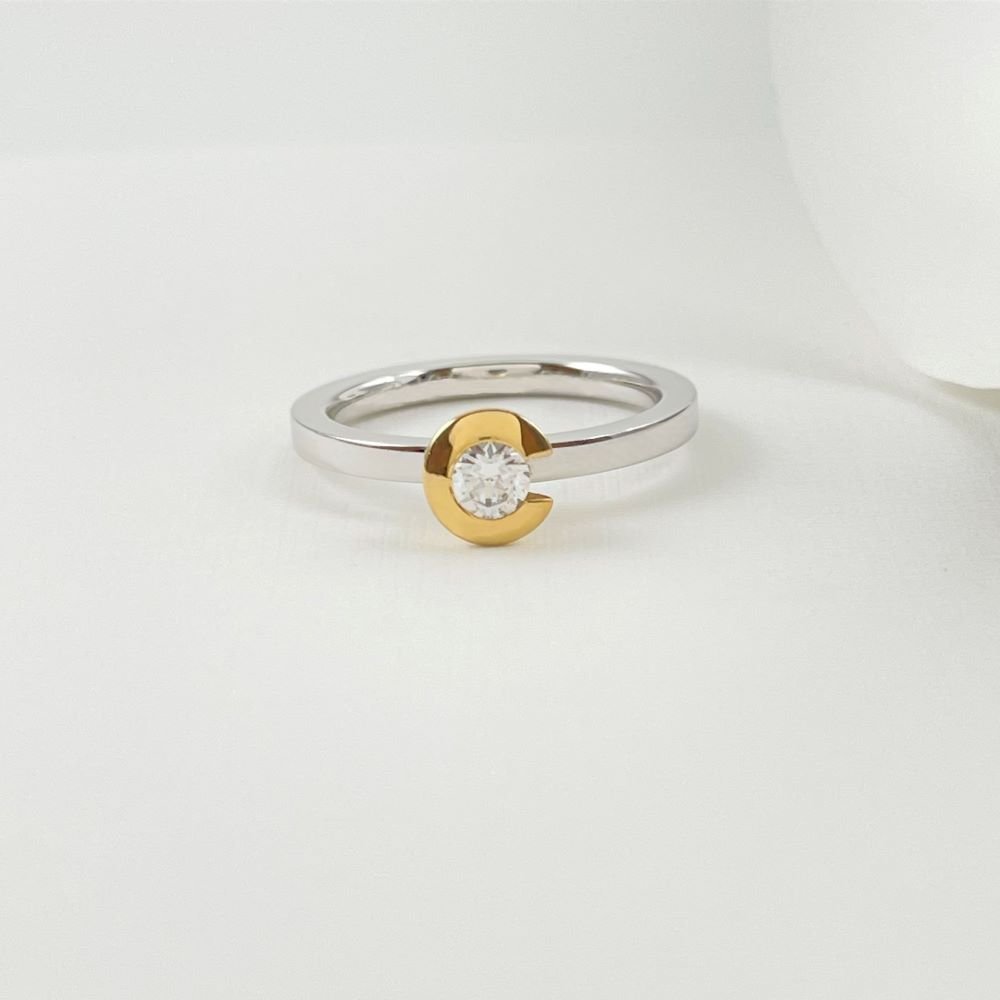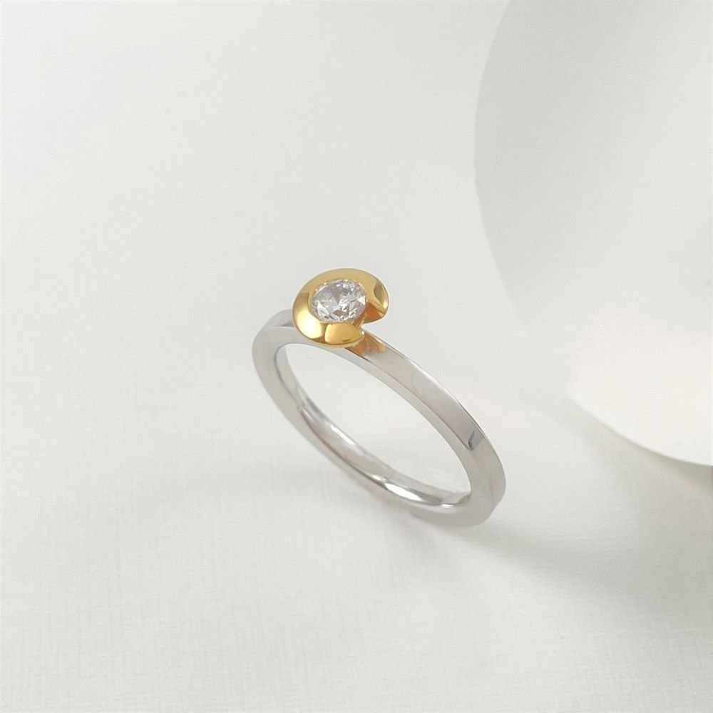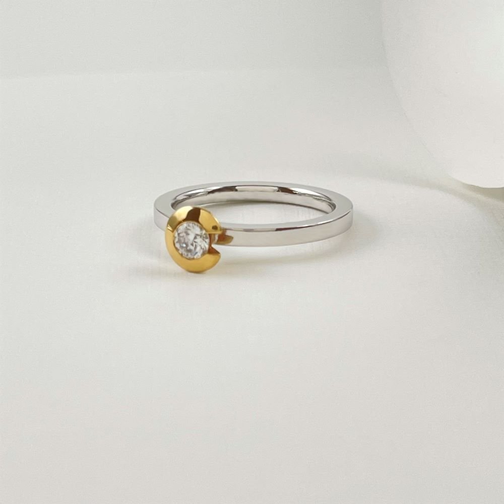 Μονόπετρο δαχτυλίδι δίχρωμο με δέσιμο μισοφέγγαρο