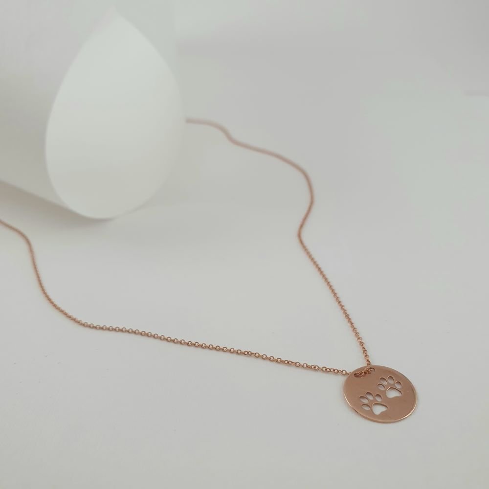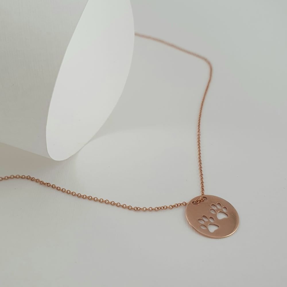 Κολιέ αλυσίδα ροζ χρυσό με πατουσάκια