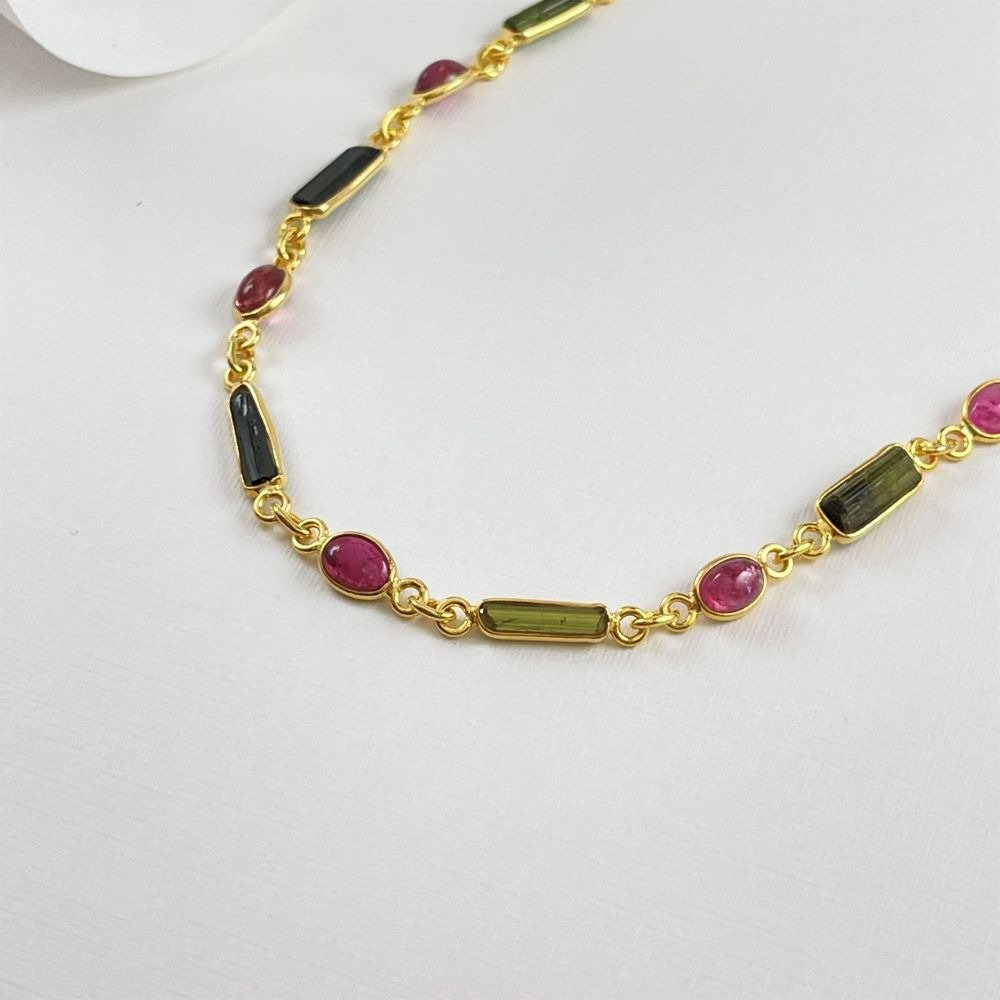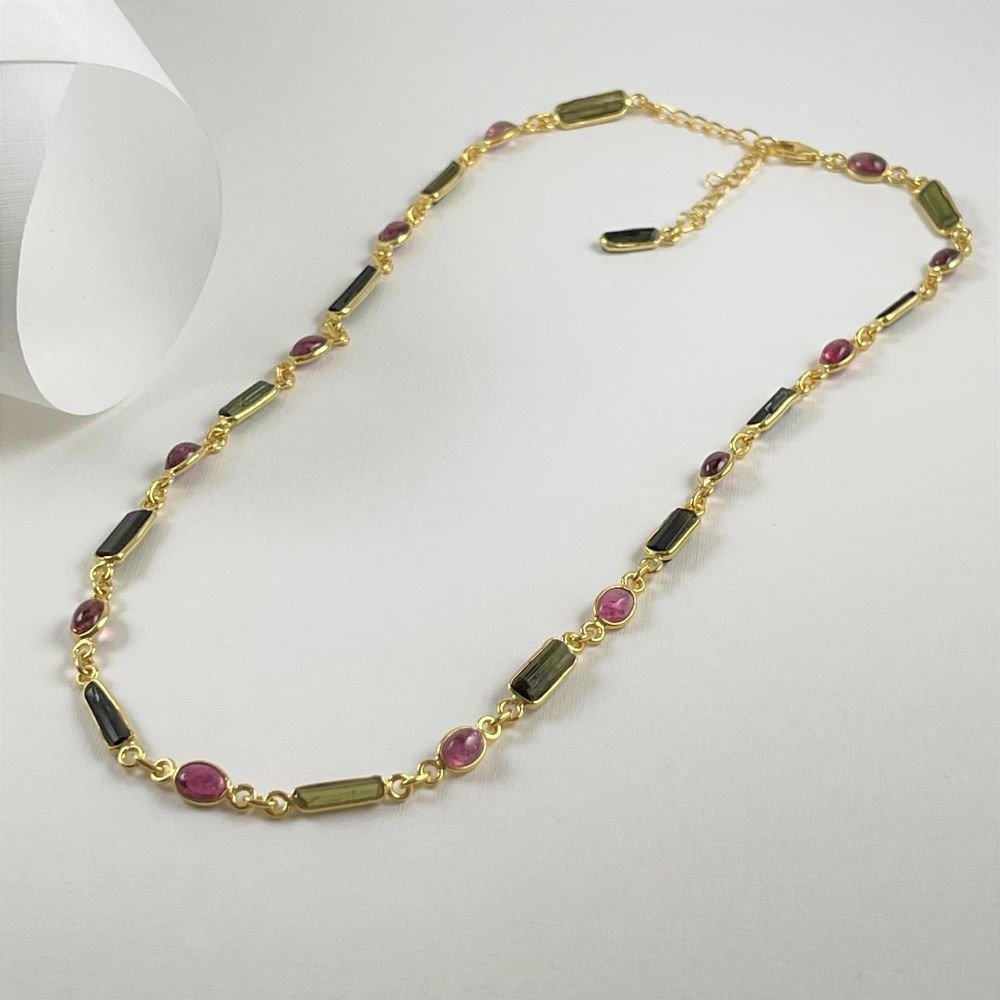 Κολιέ αλυσίδα απο κόκκινη και πράσινη τουρμαλίνη