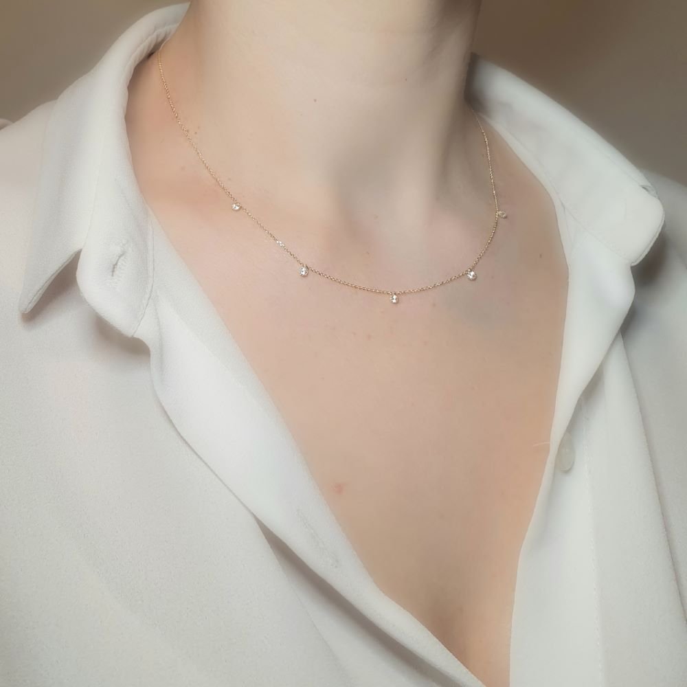 Κολιέ αλυσίδα χρυσή με λευκά Ζιργκον