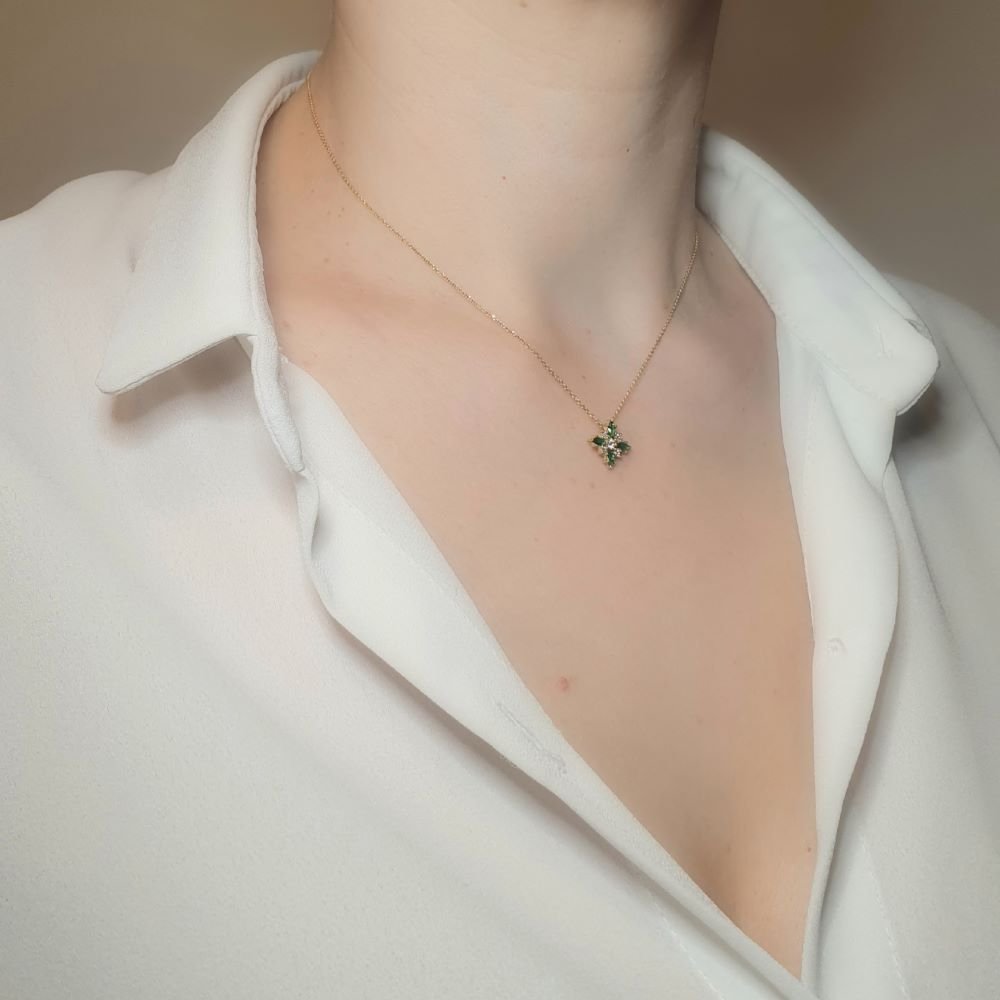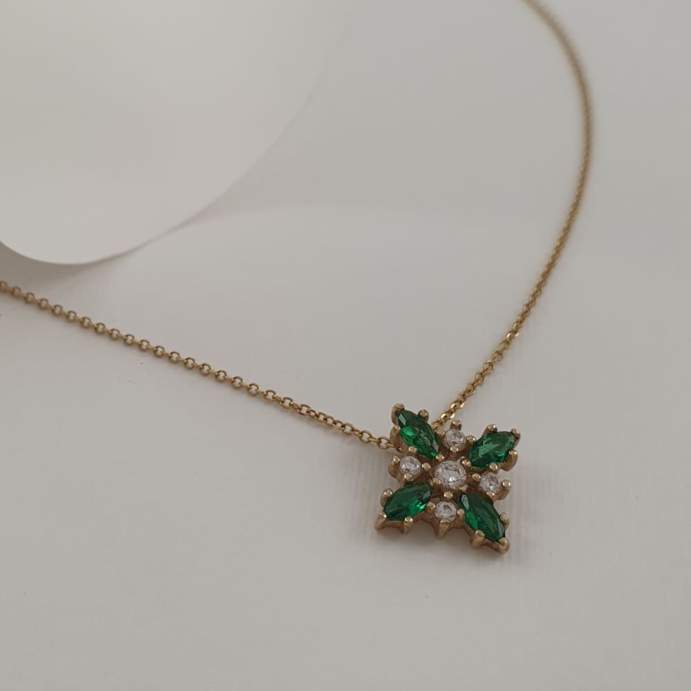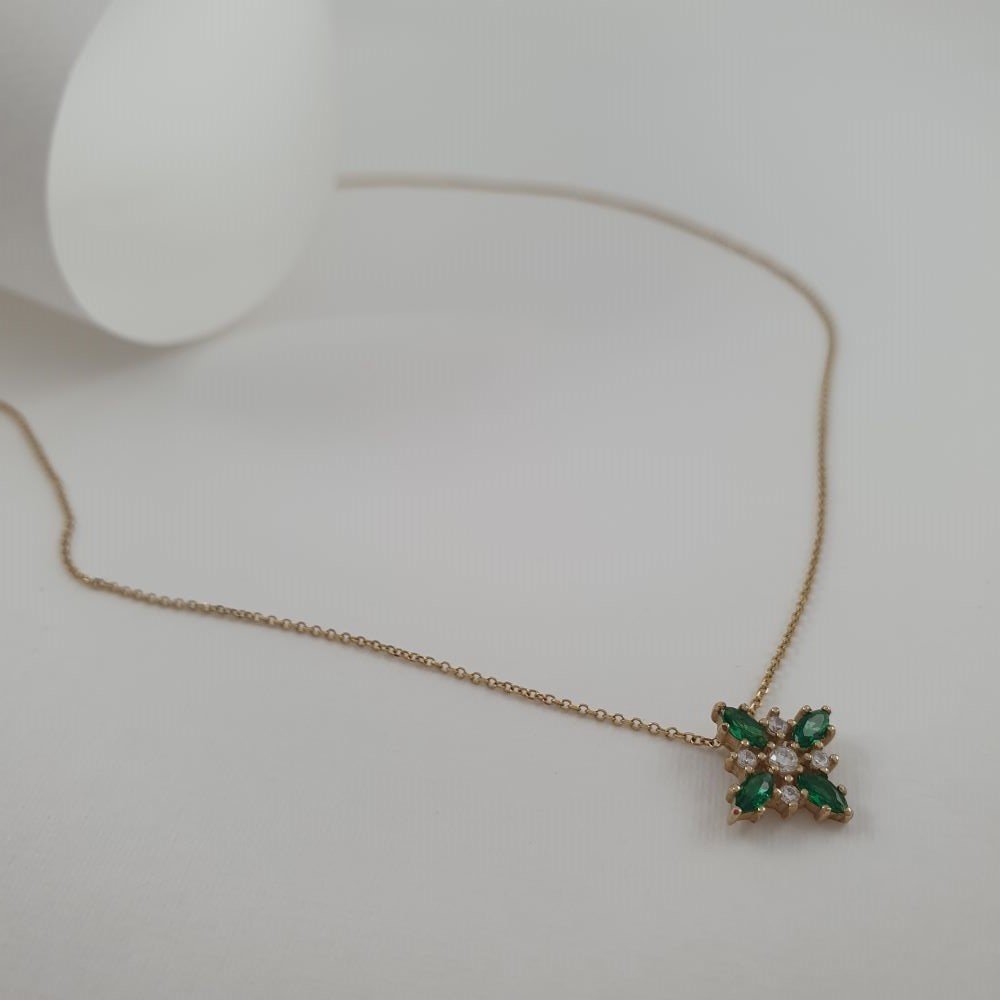 Κολιέ αλυσίδα χρυσή με λουλούδι από άσπρο & πράσινα Ζιργκον