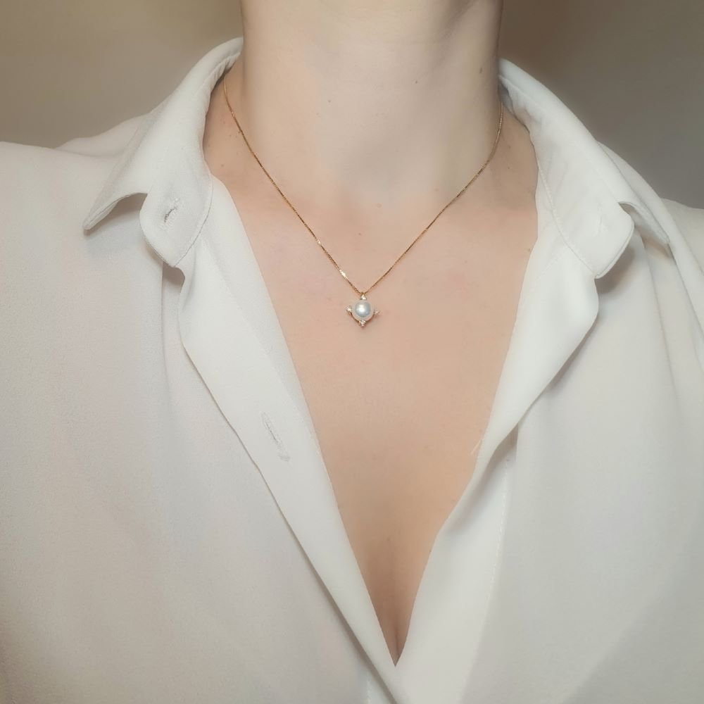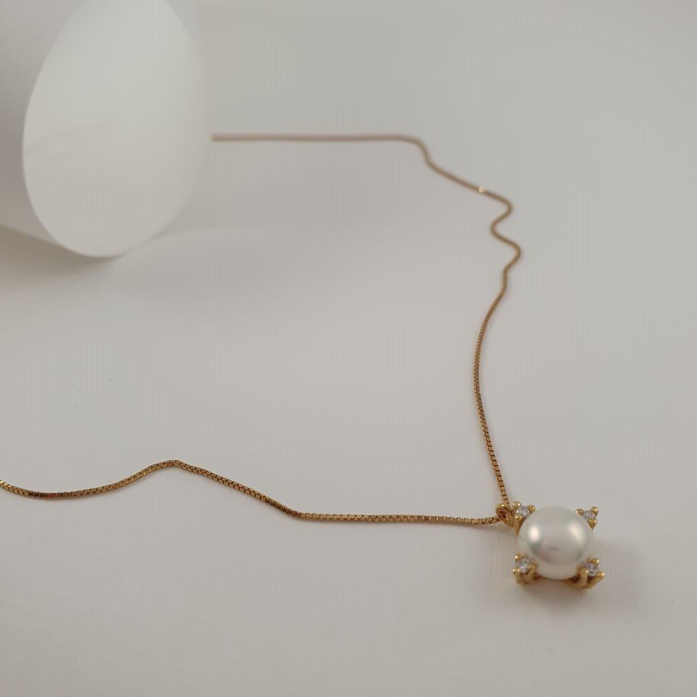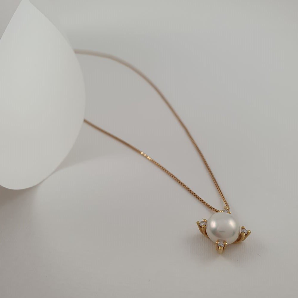 Κολιέ αλυσίδα χρυσή με Μαργαριτάρι & Διαμάντια