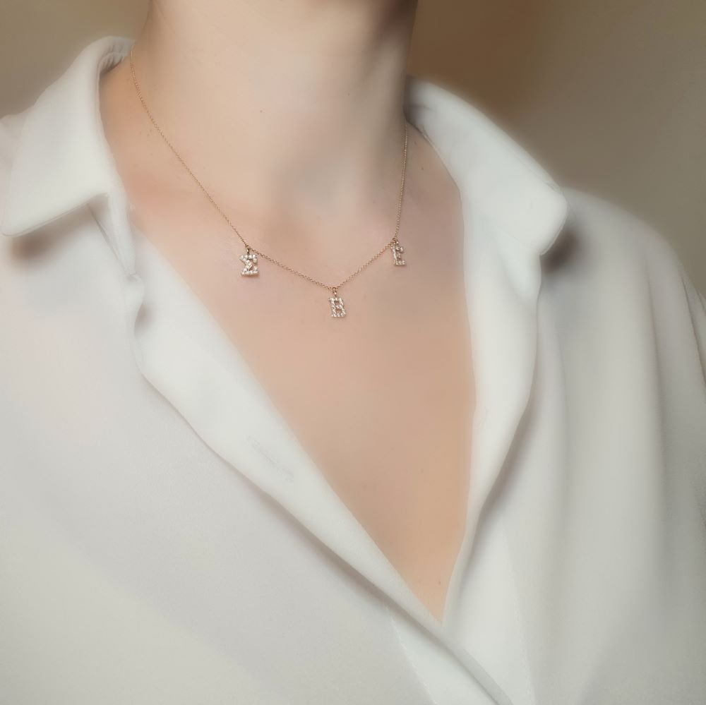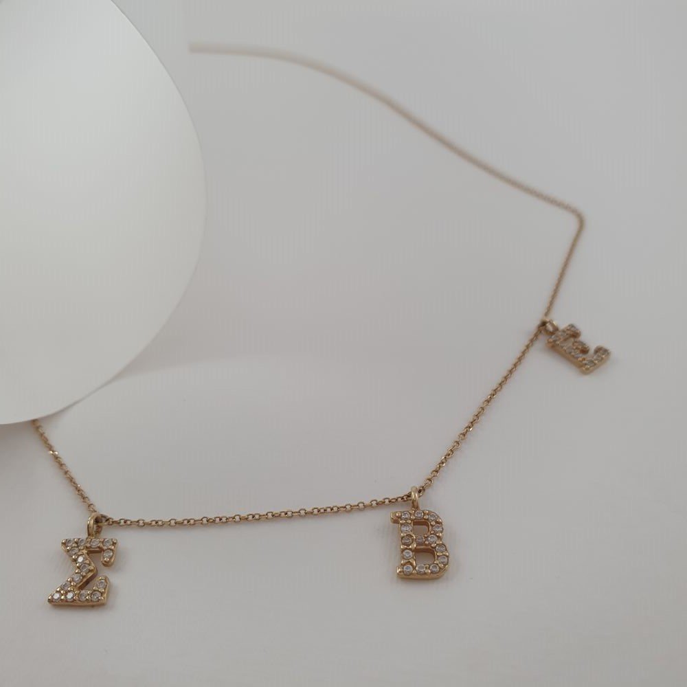 Κολιέ αλυσίδα χρυσή με μονογράμματα Σ Β Ε με λευκά Ζιργκον