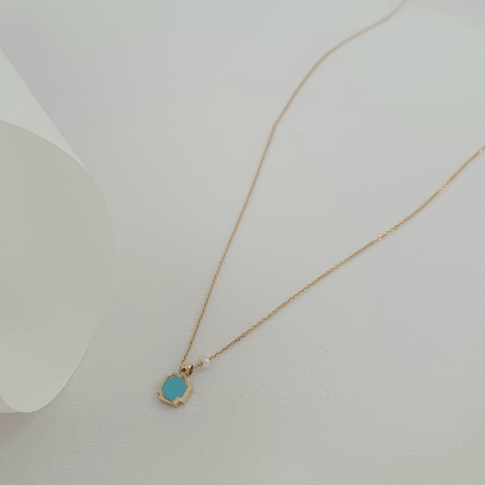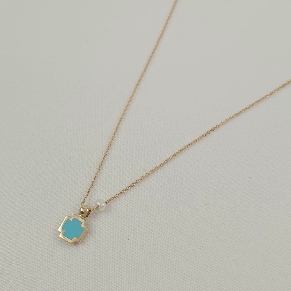Κολιέ αλυσίδα χρυσή με σταυρό από Τιρκουάζ & Μαργαριτάρι