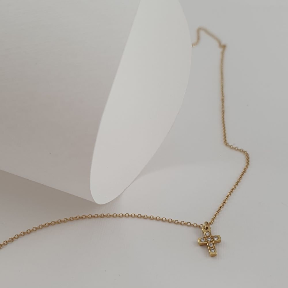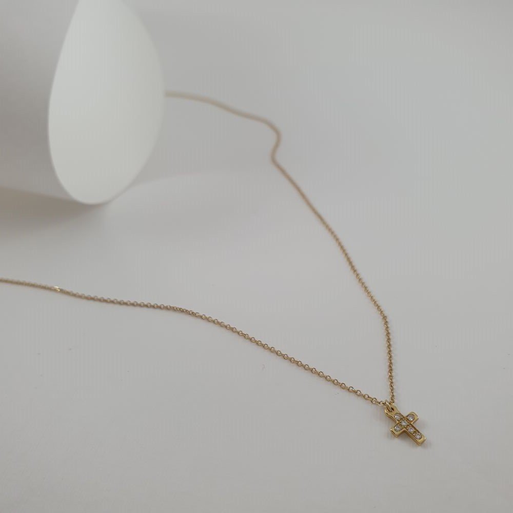 Κολιέ αλυσίδα χρυσή με σταυρό με Διαμάντια