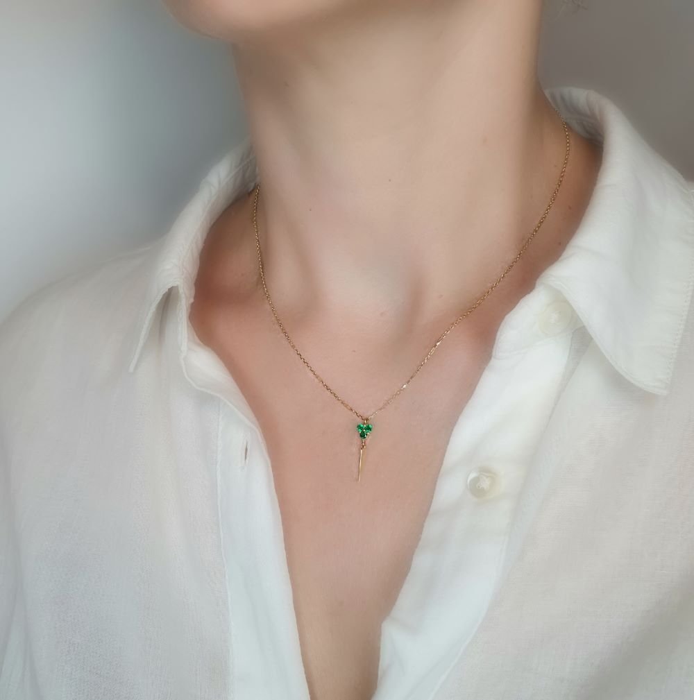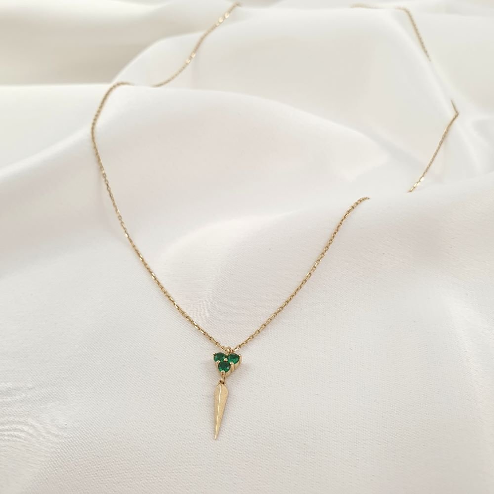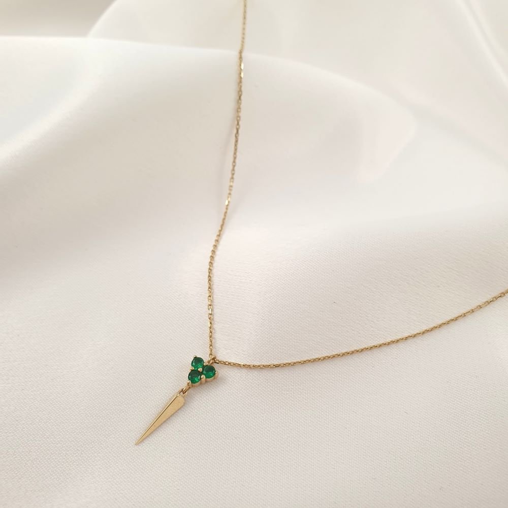 Κολιέ αλυσίδα χρυσή με τριγωνικό μενταγιόν & πράσινα Ζιργκον
