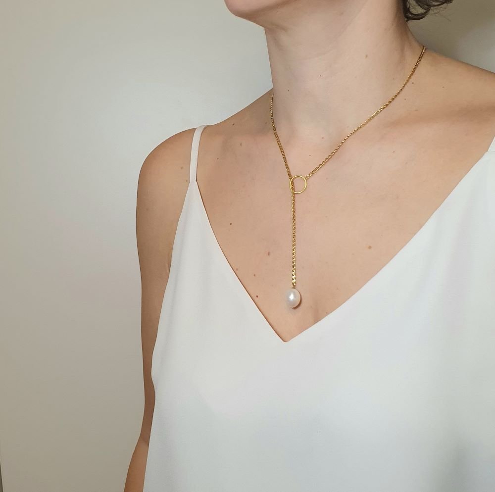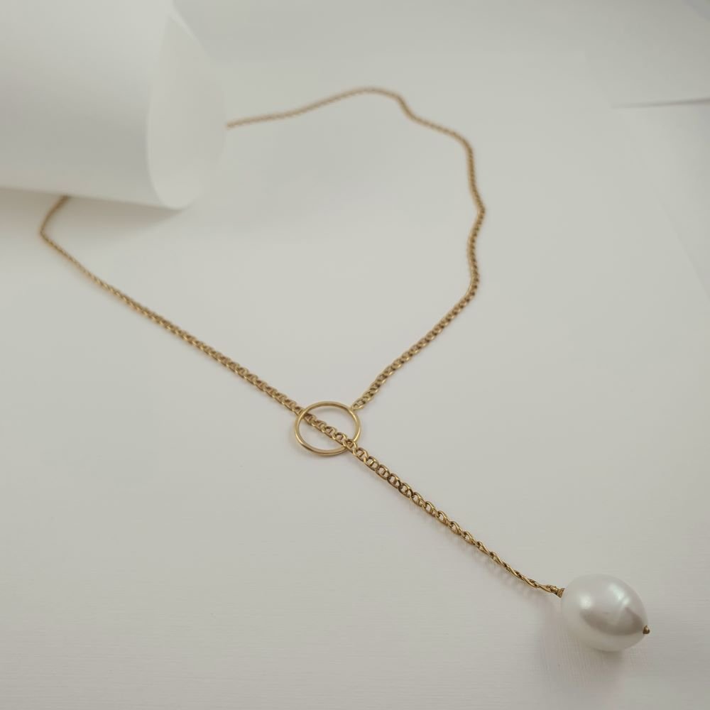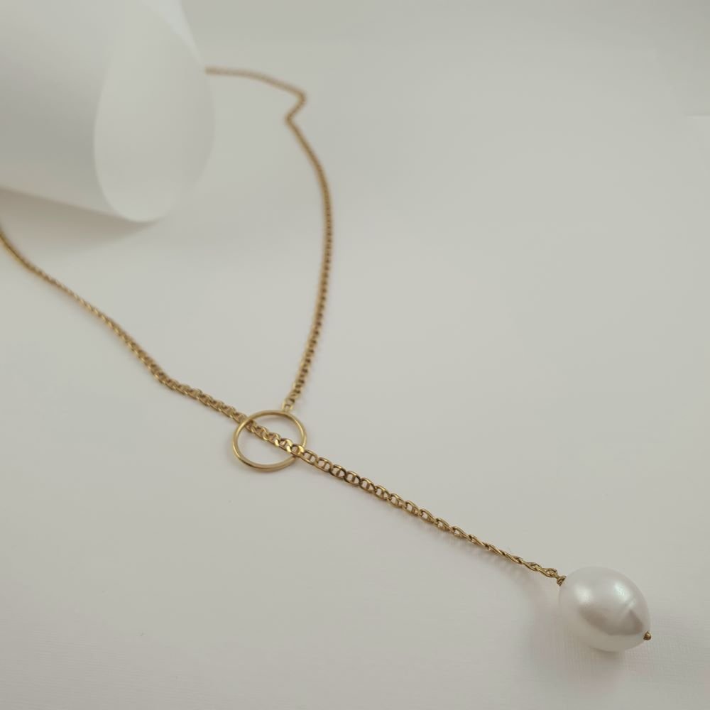 Κολιέ αλυσίδα χρυσό με οβάλ Μαργαριτάρι