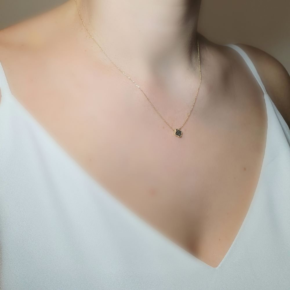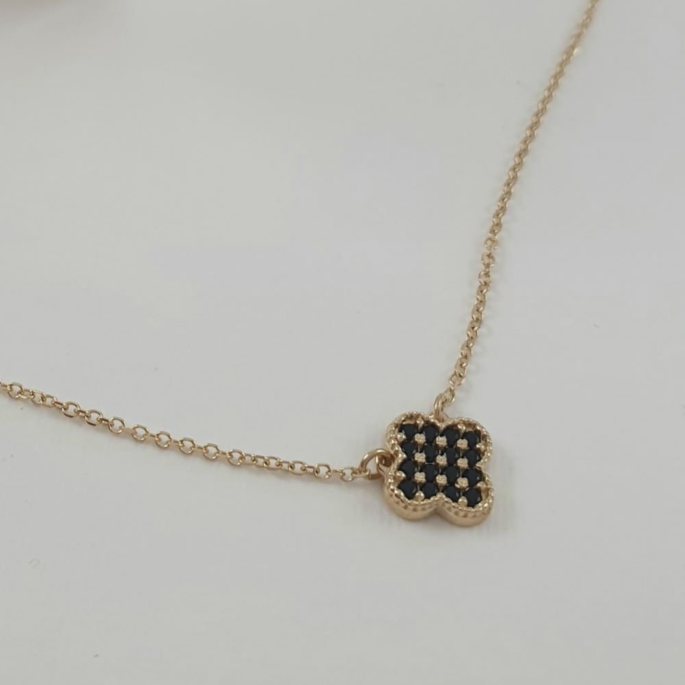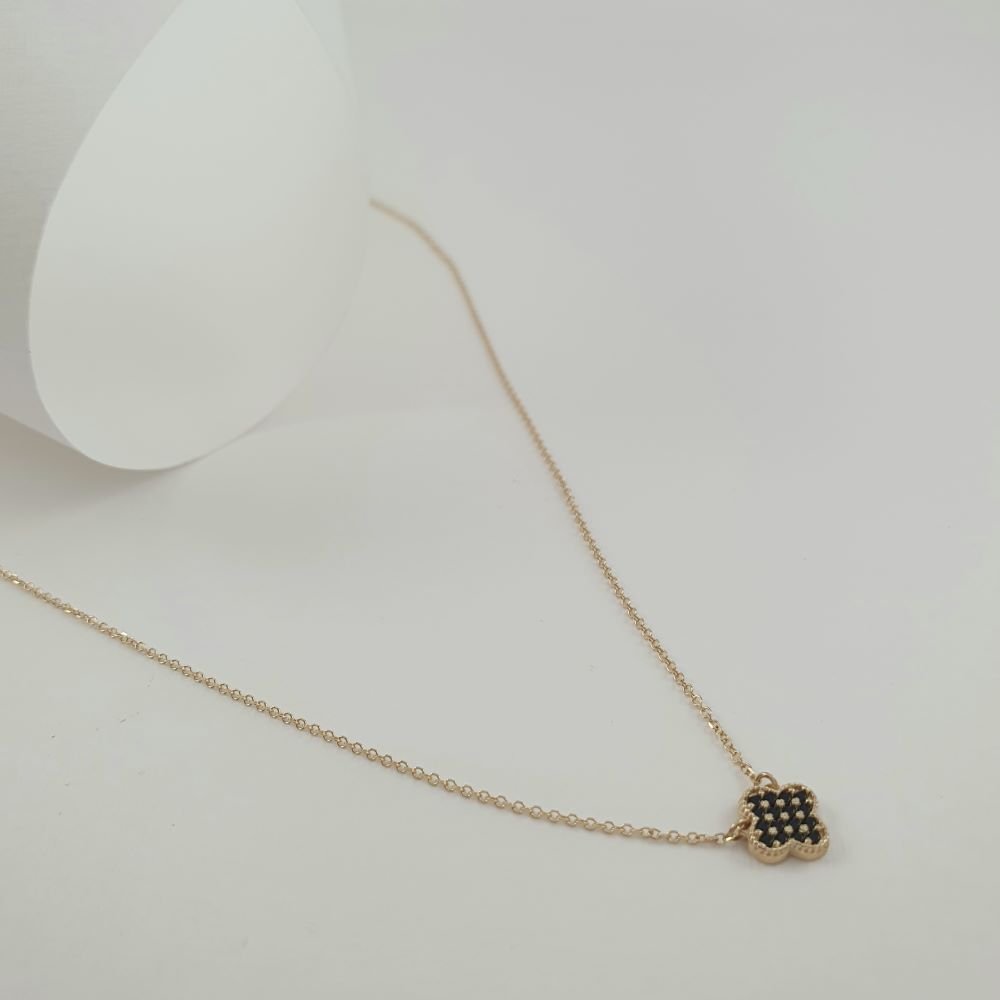 Κολιέ αλυσίδα χρυσό με σταυρό λουλούδι από μαύρο Ζιργκον
