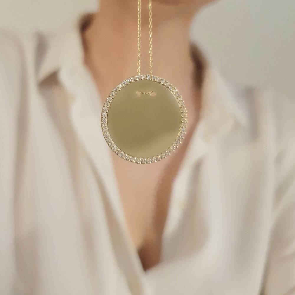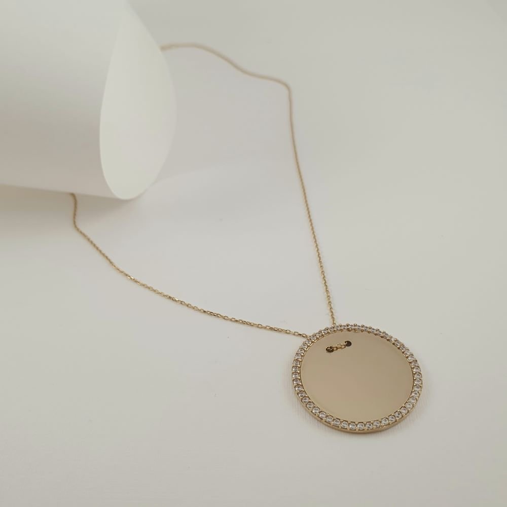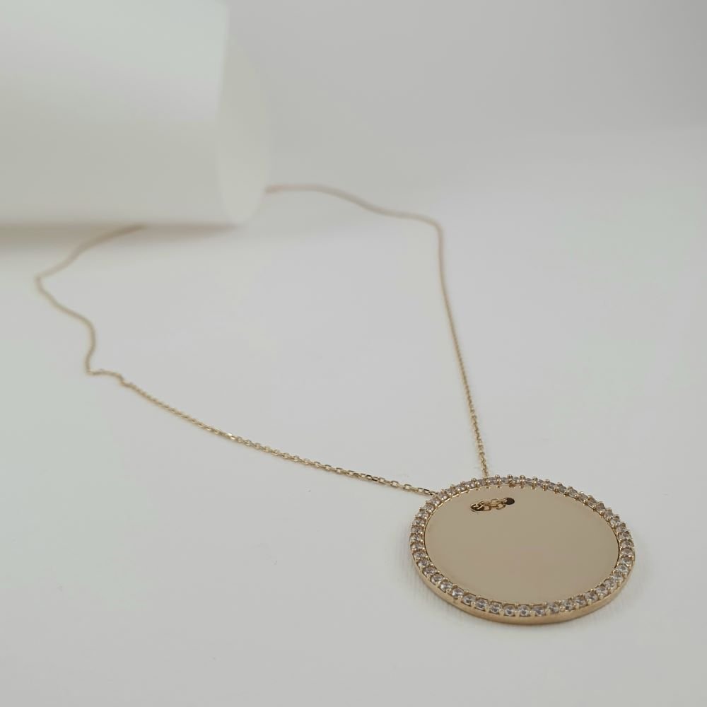 Κολιέ αλυσίδα χρυσό με στρόγγυλο δίσκο με Ζιργκον