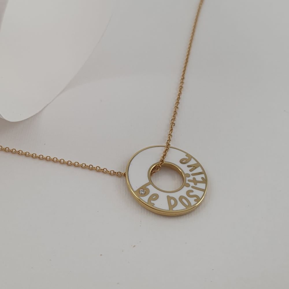 Κολιέ αλυσίδα δίσκος με διαμάντι & Σμάλτο