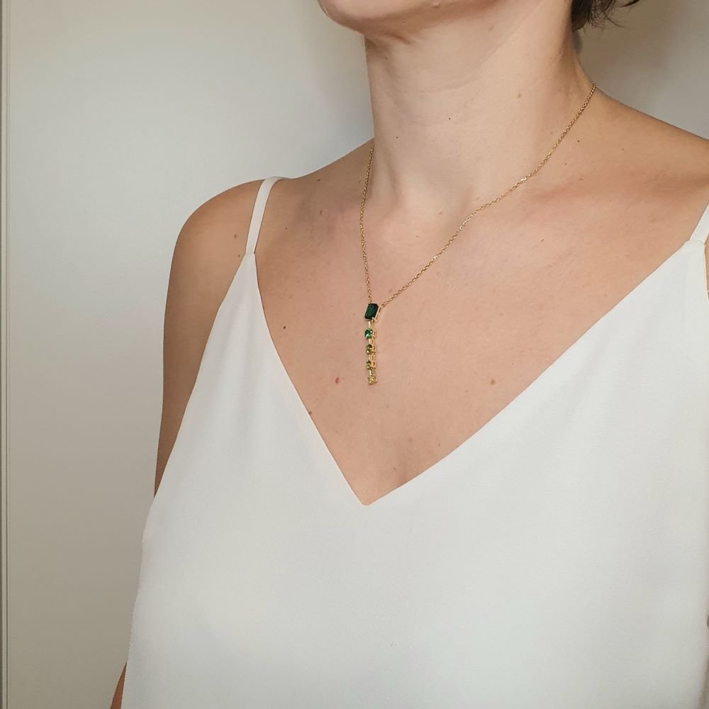 Κολιέ αλυσίδα με γραβάτα από πράσινα Ζιργκον