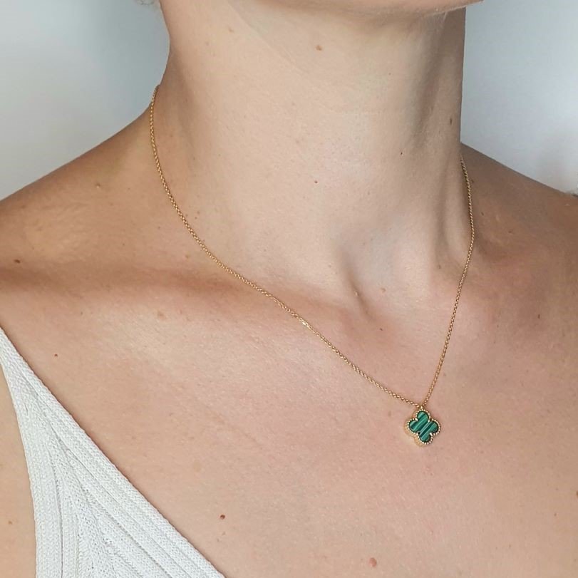 Κολιέ αλυσίδα με λουλούδι από Μαλαχίτη