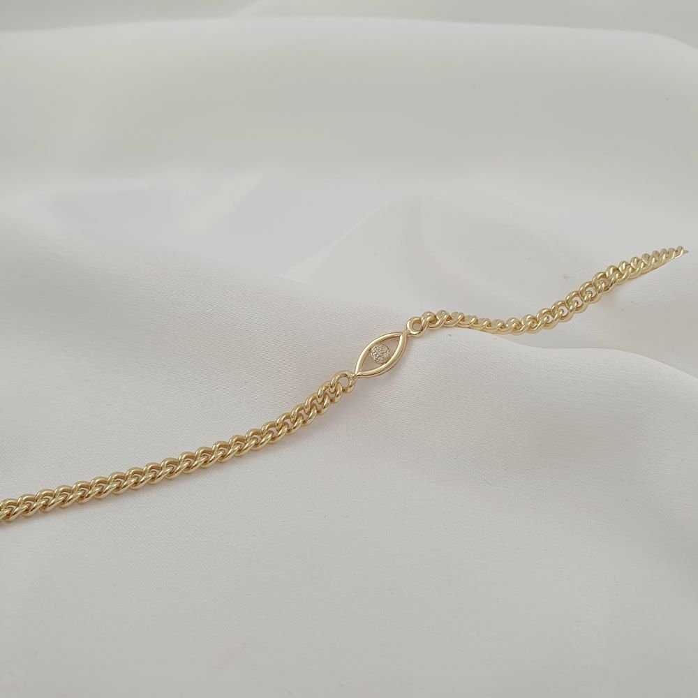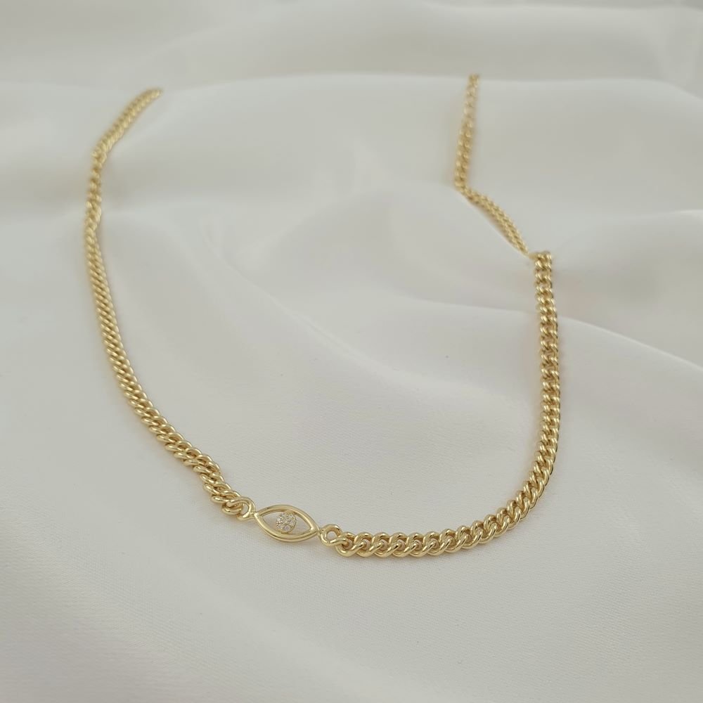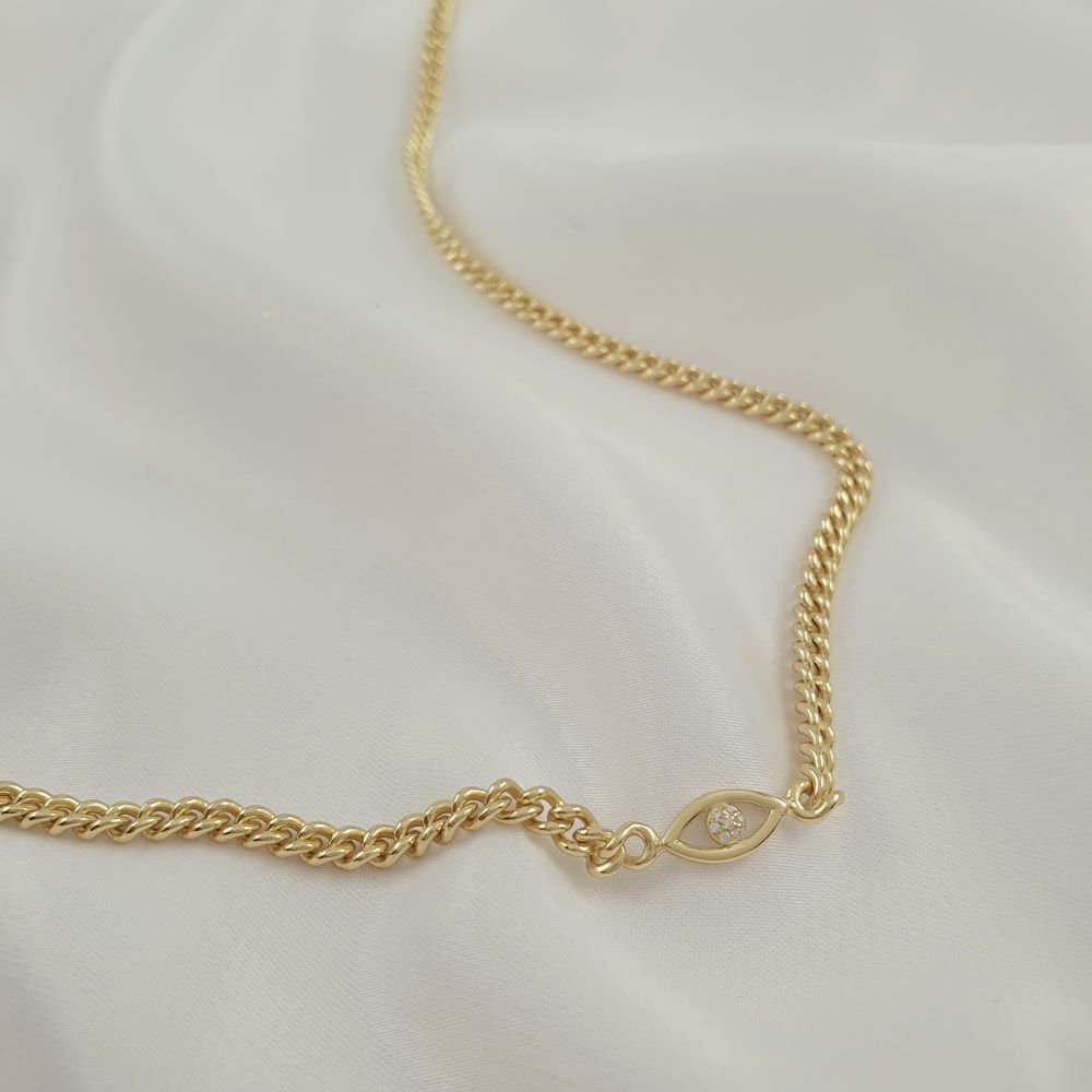 Κολιέ αλυσίδα με μάτι & λευκό Ζιργκον