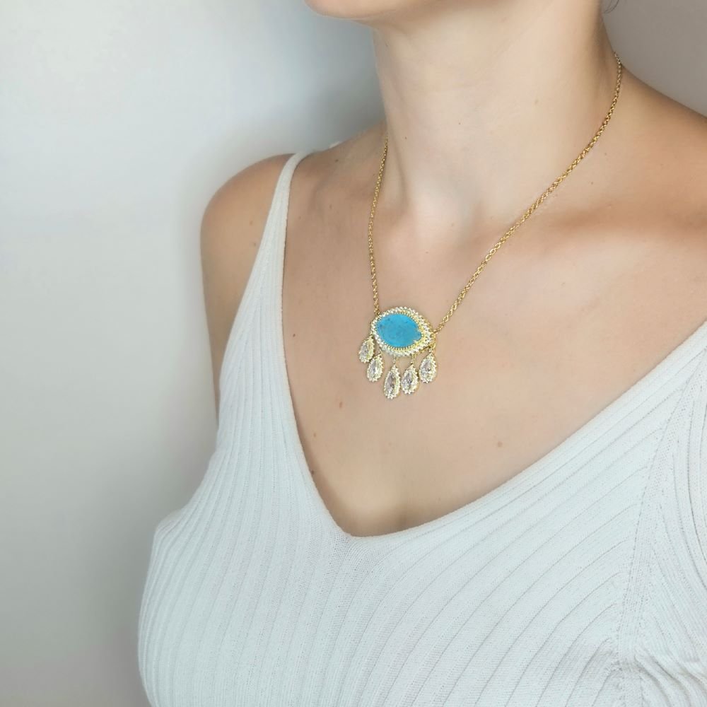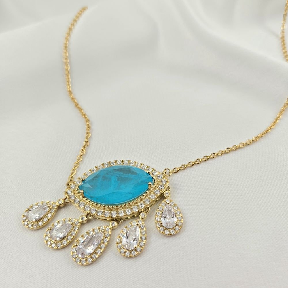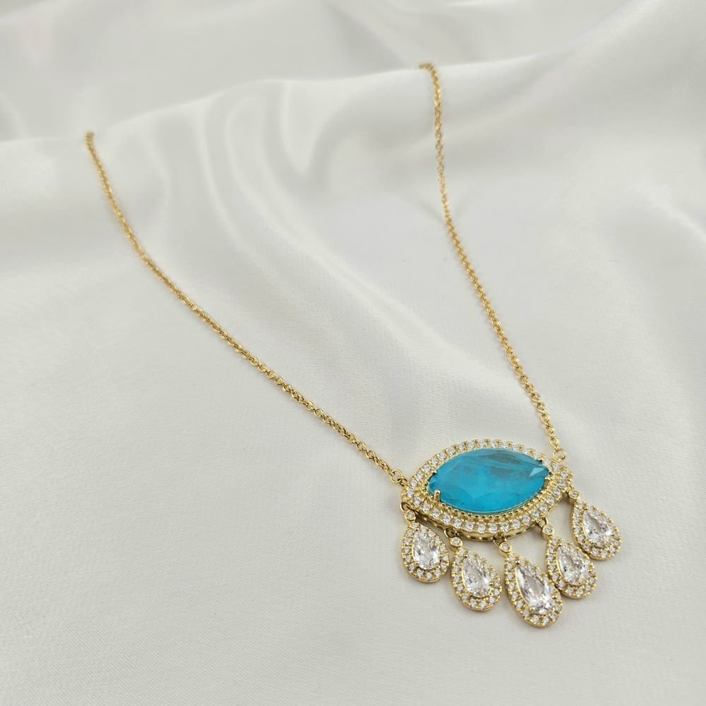 Κολιέ αλυσίδα με μενταγιόν με λευκά & acqua Ζιργκον