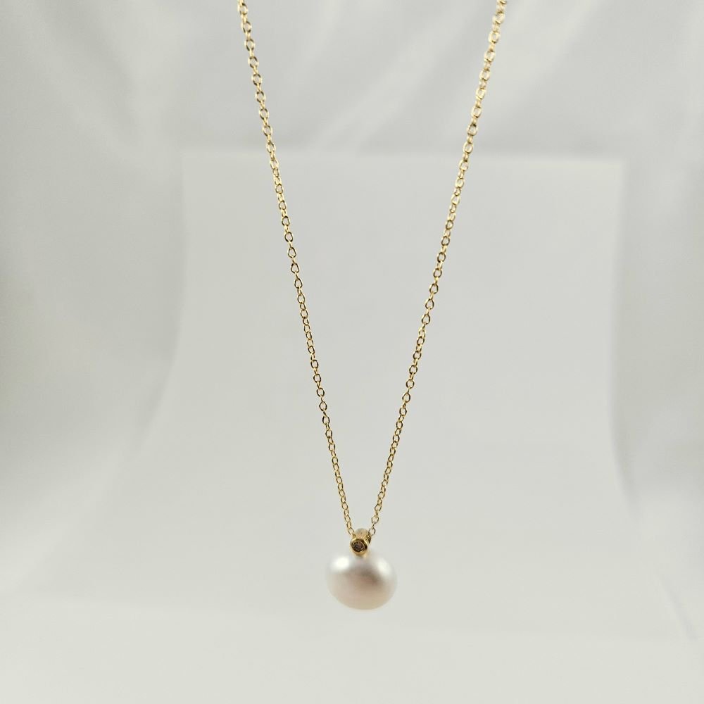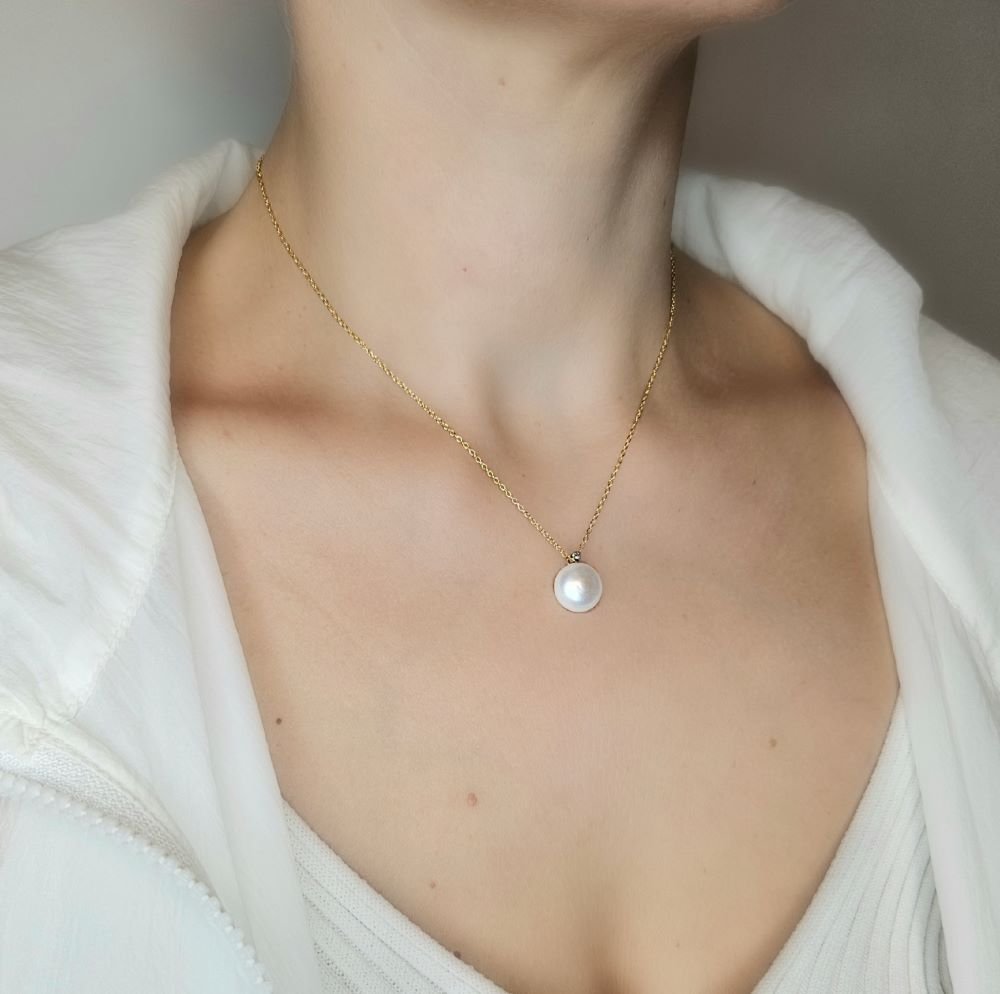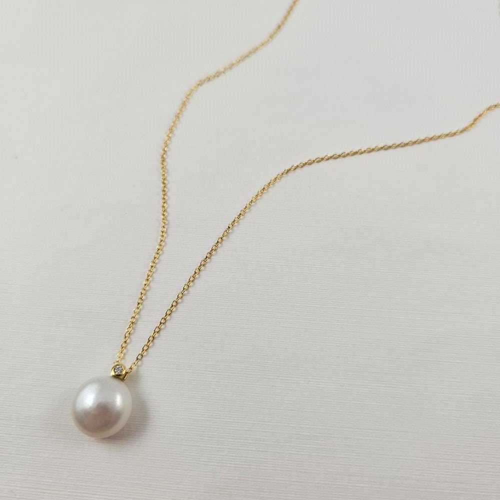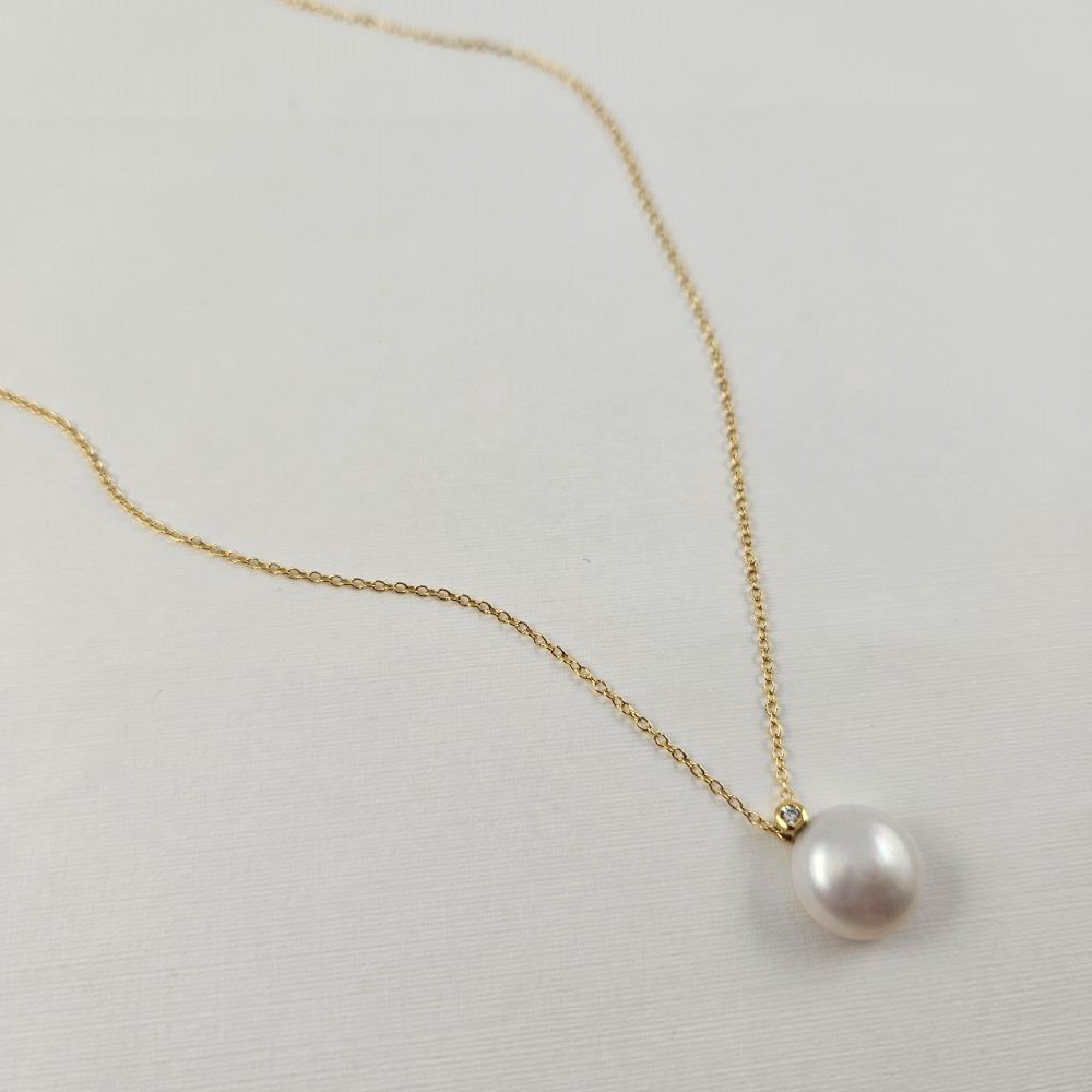 Κολιέ αλυσίδα με μενταγιόν με Μαργαριτάρι & λευκό Ζιργκον