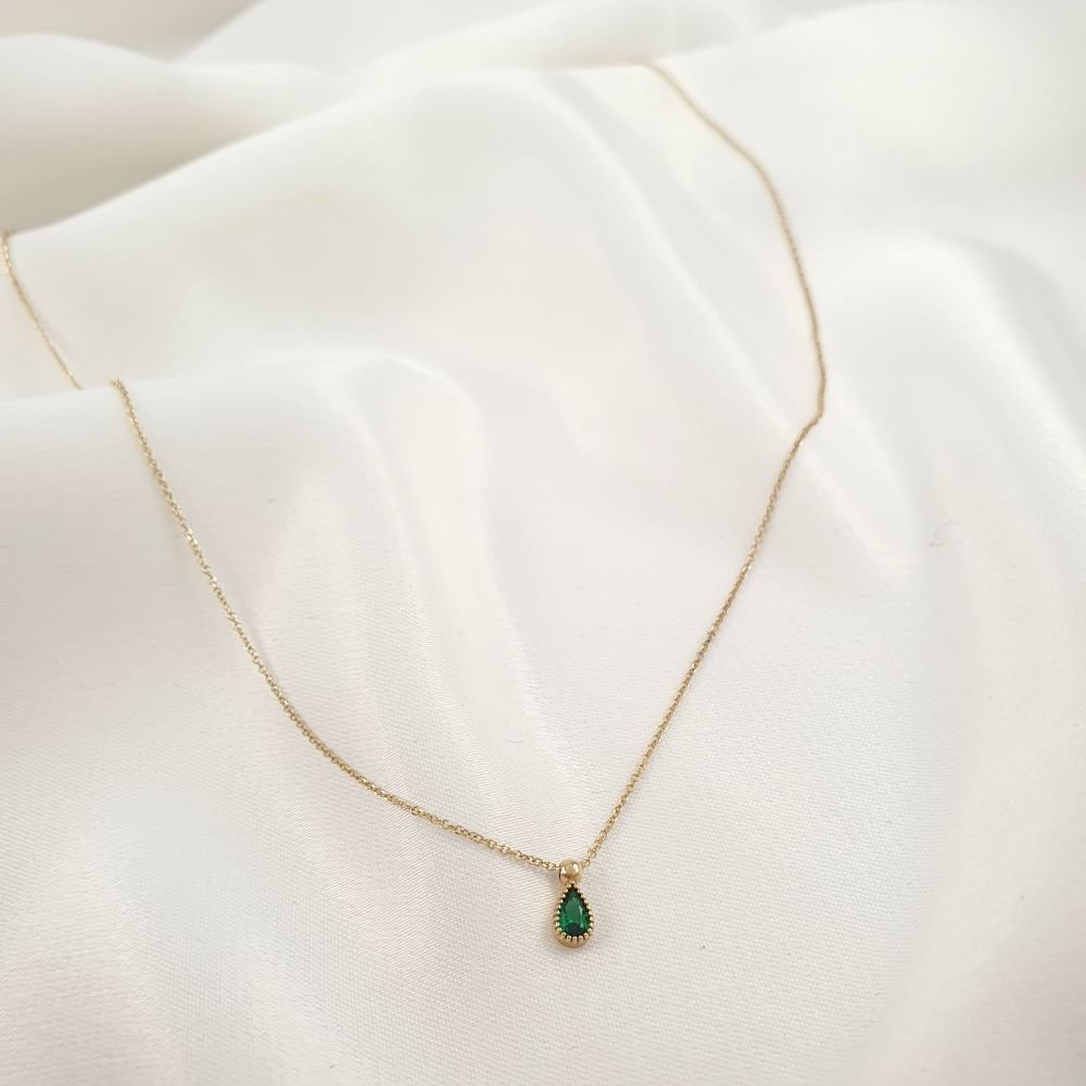 Κολιέ αλυσίδα με μενταγιόν πράσινο Ζιργκον