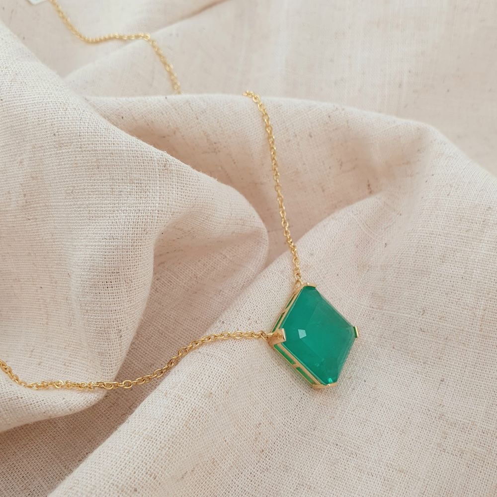 Κολιέ αλυσίδα με πέτρα από πράσινο Ζιργκον