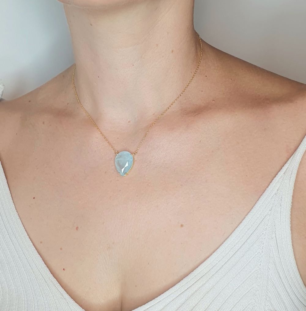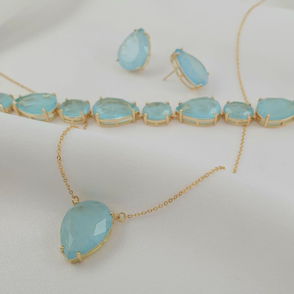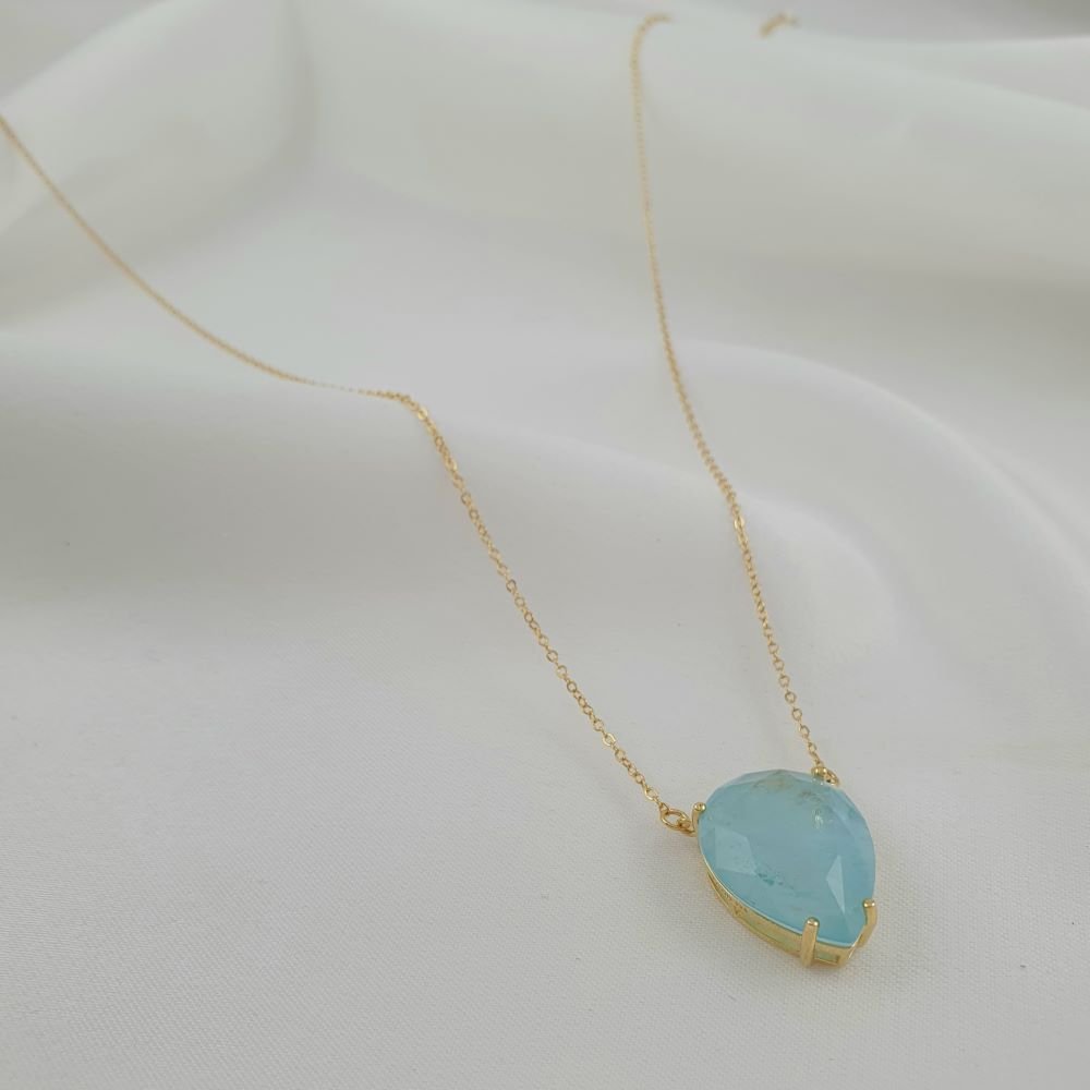 Κολιέ αλυσίδα με πέτρα δάκρυ από γαλάζιο Ζιργκόν