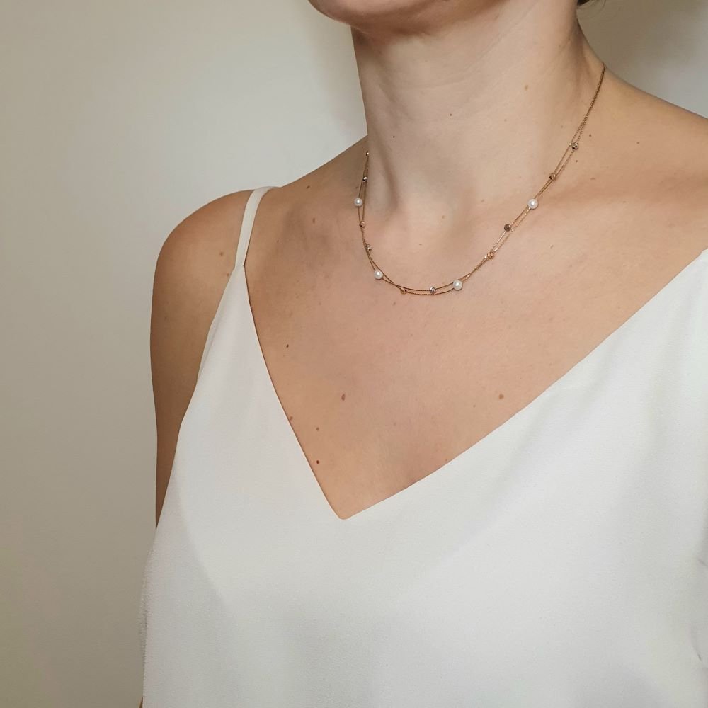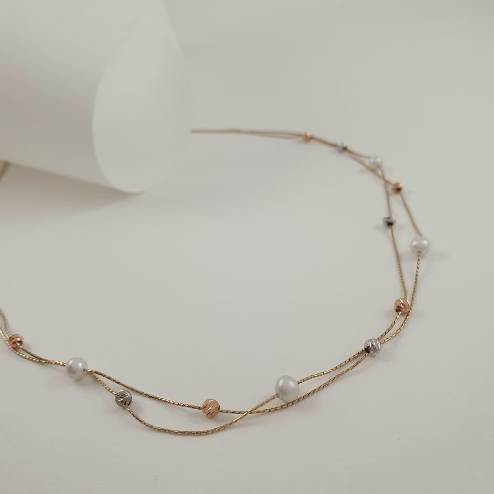 Κολιέ χρυσό διπλό με κίτρινες, λευκές μπάλες & Μαργαριτάρια