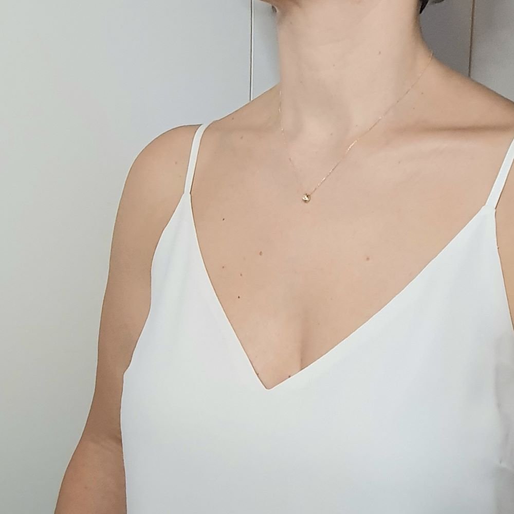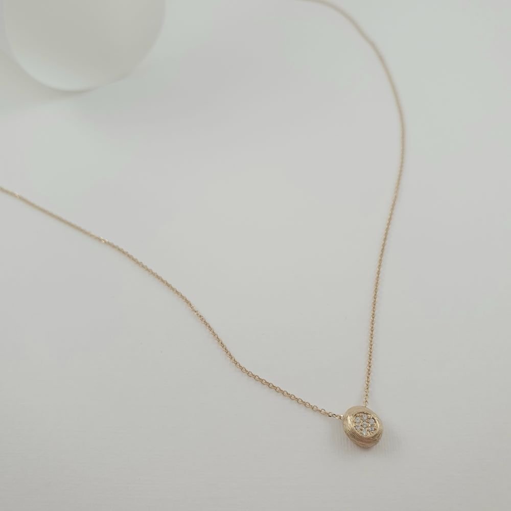 Κολιέ χρυσό με μικρή ανάγλυφη μπάλα γεμάτη Ζιργκον