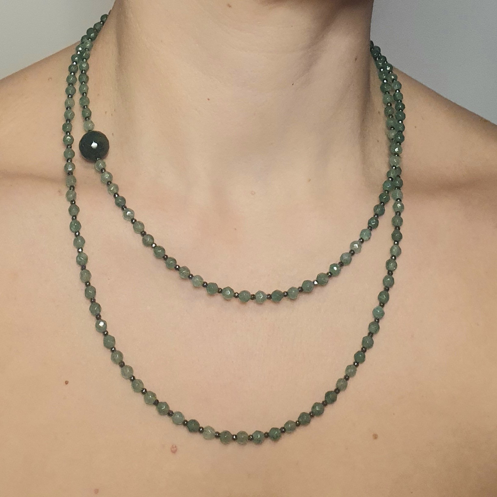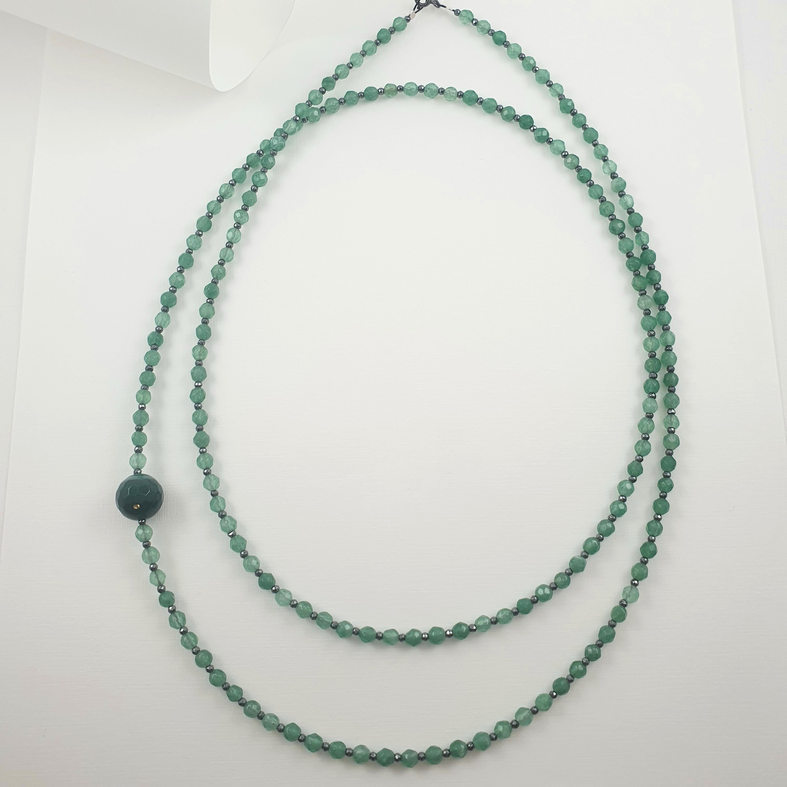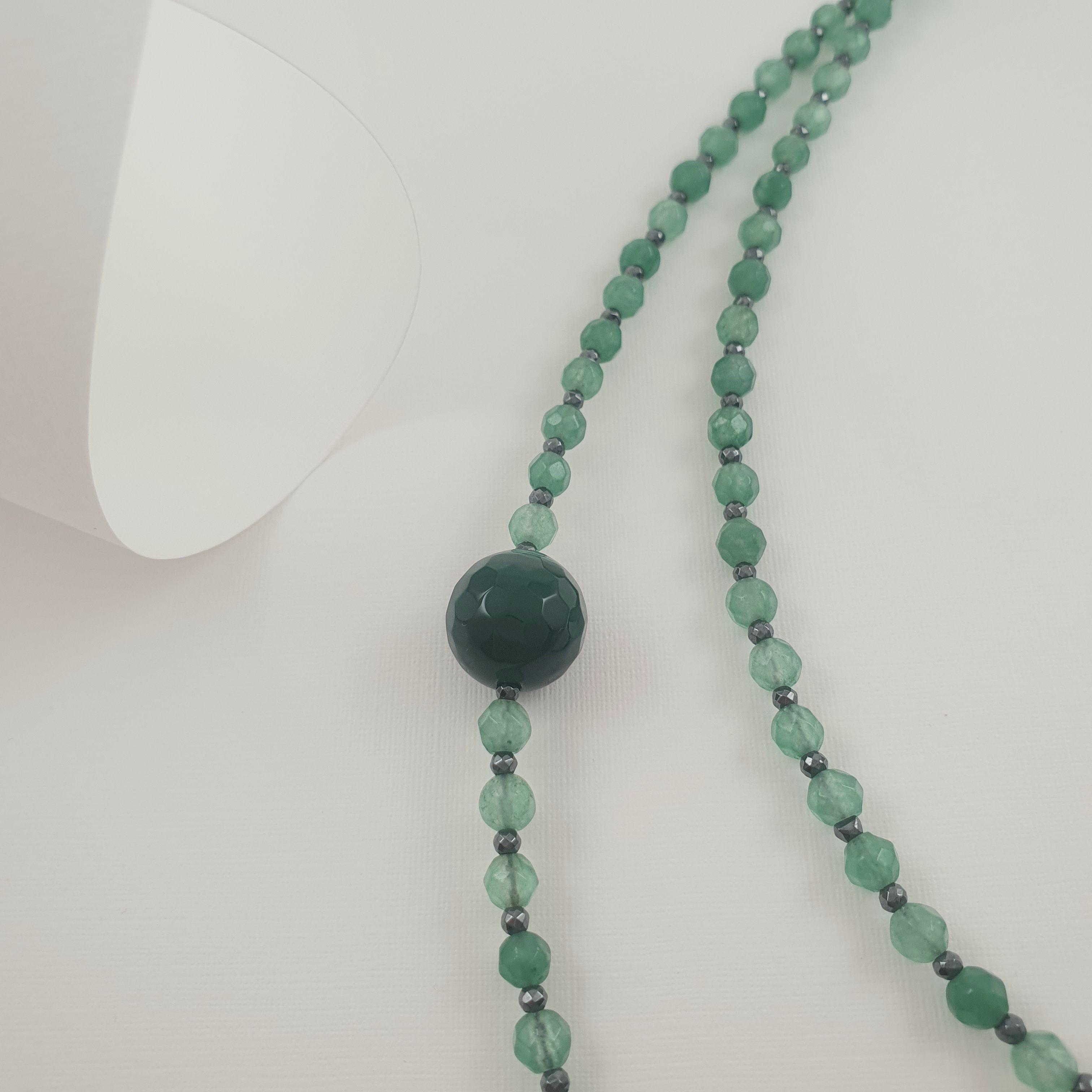 Κολιέ μακρύ με λίθους Αχάτη & Αιματίτη