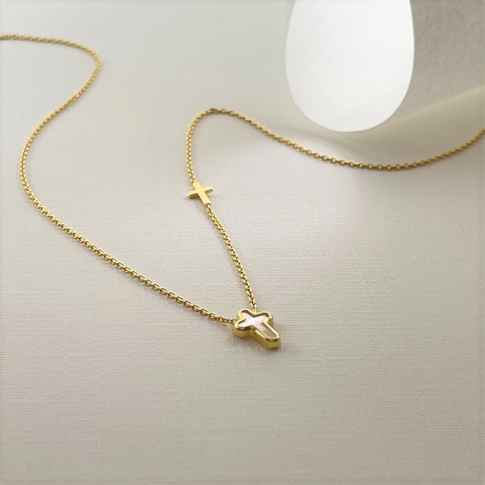 Κολιέ με φίλντισι και χρυσό σταυρό