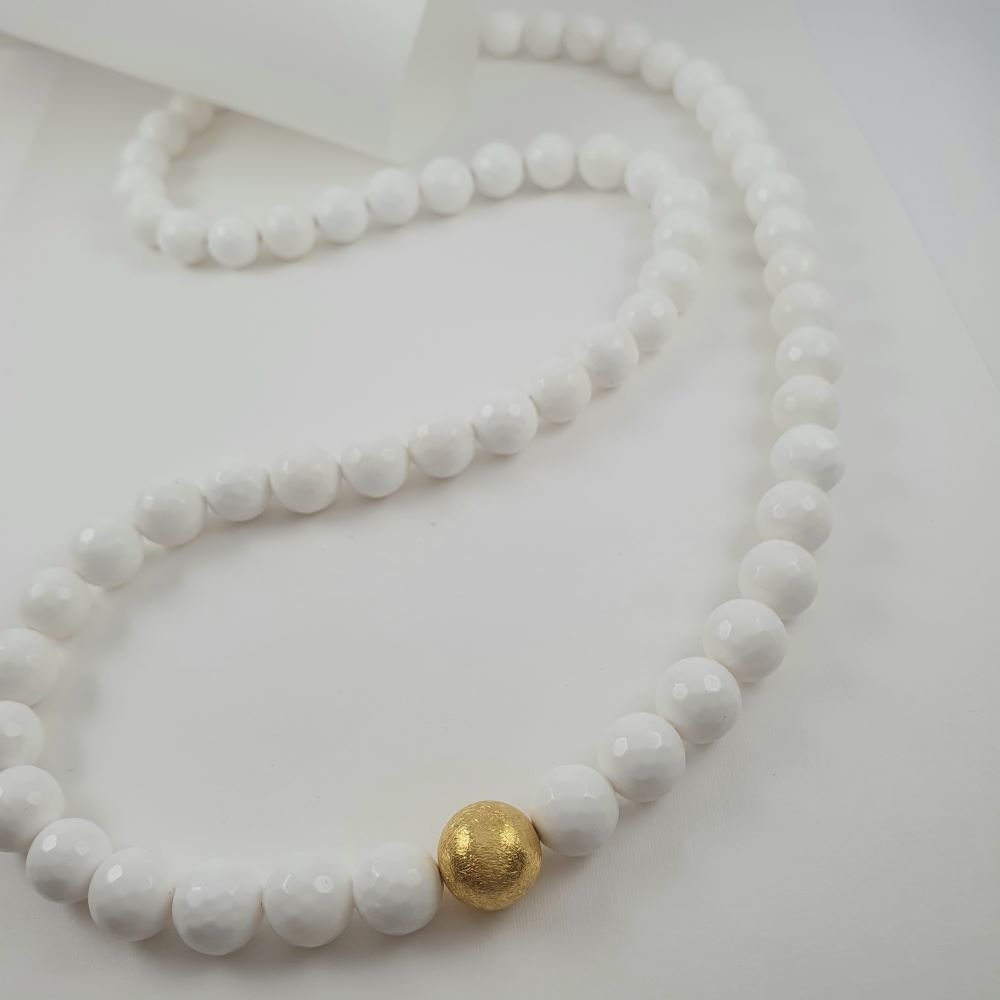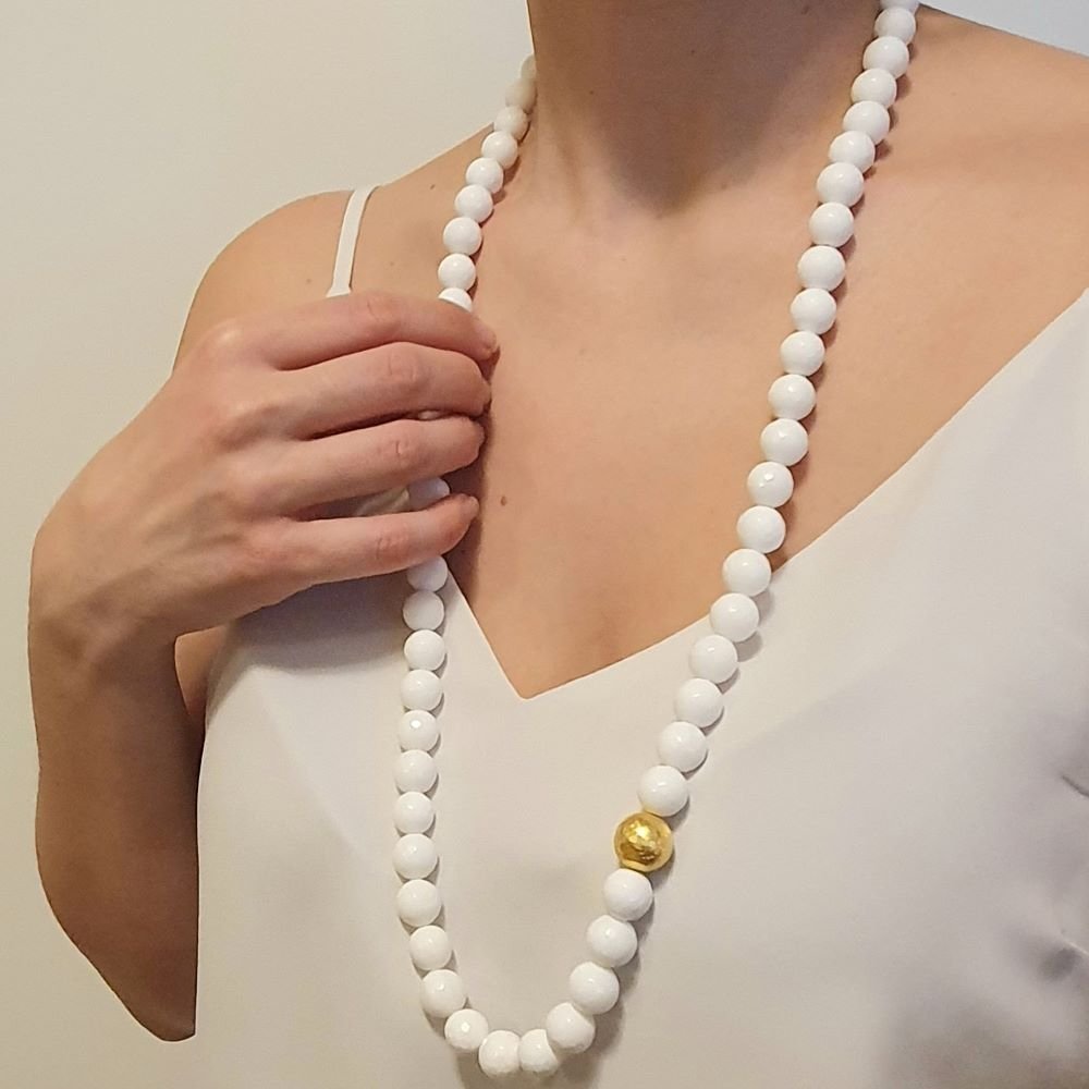 Κολιέ με πέτρες λευκού Αχάτη & λαμπερή σφαίρα