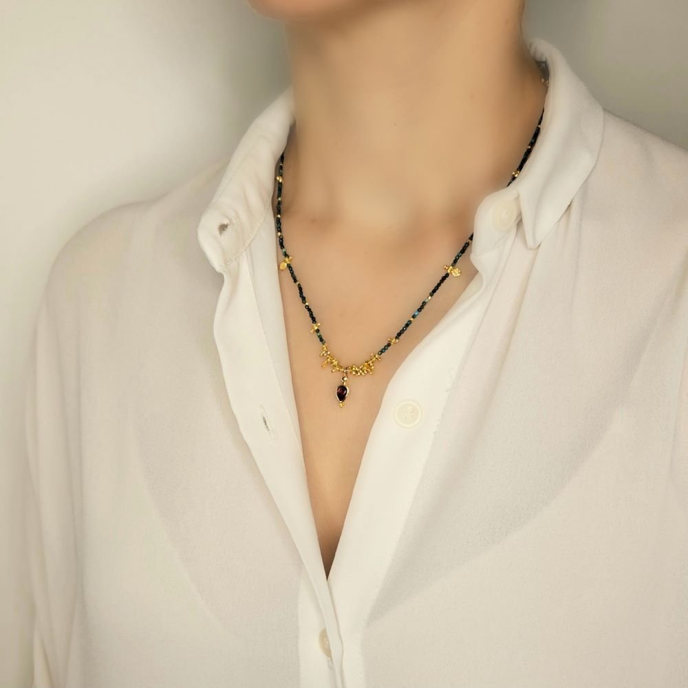 Κολιέ με Τουρμαλίνη & Χρυσόκολλα