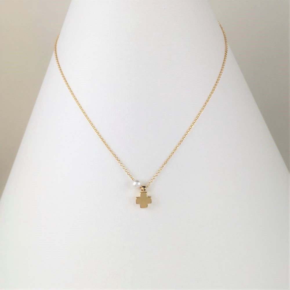 Κολιέ μικρός σταυρός με μαργαριτάρι