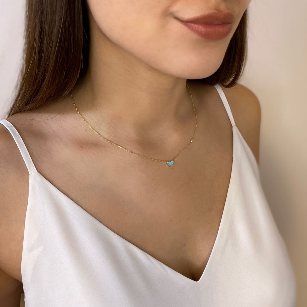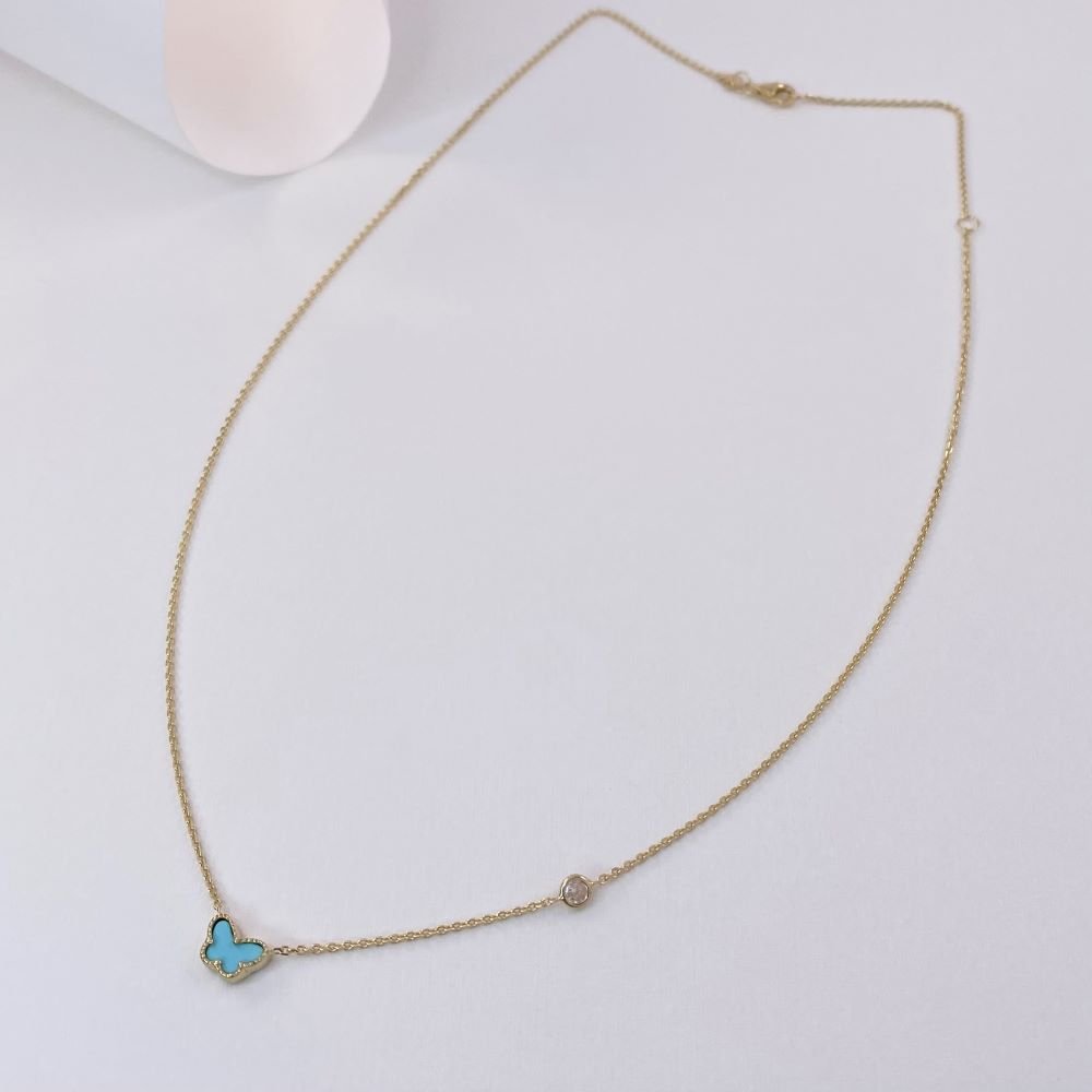 Κολιέ τιρκουάζ πεταλούδα και ζιργκόν