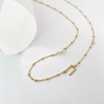 Κολιέ με μονόγραμμα Ι και μικρό κρεμαστό ζιργκόν