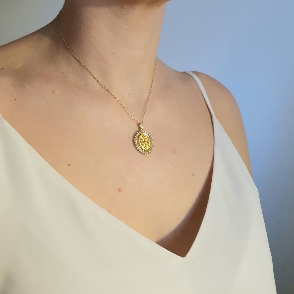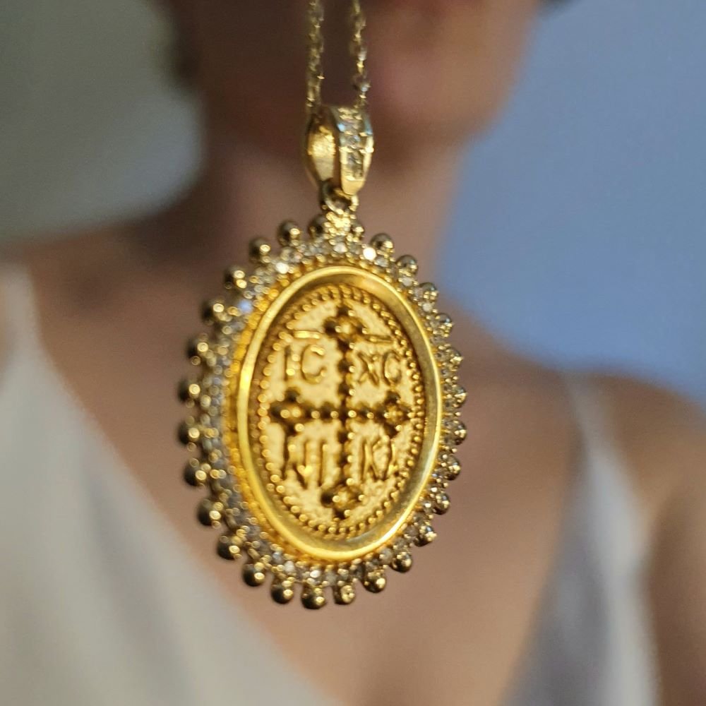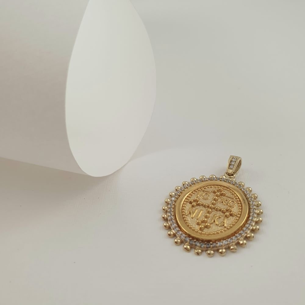 Μενταγιόν φυλακτό Κωνσταντινάτο χρυσό με Ζιργκον