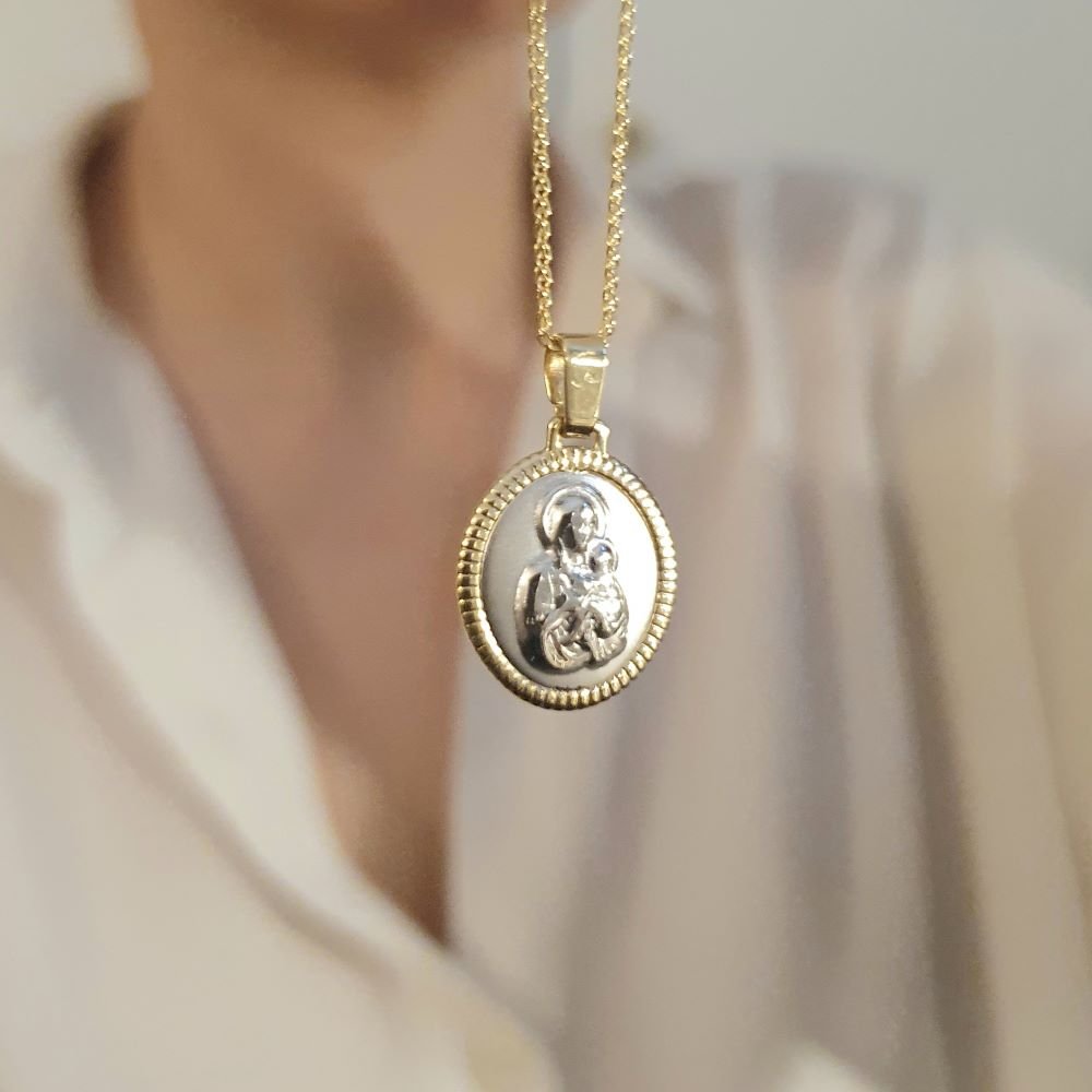 Μενταγιόν Φυλακτό Παναγιά Χρυσό δίχρωμο